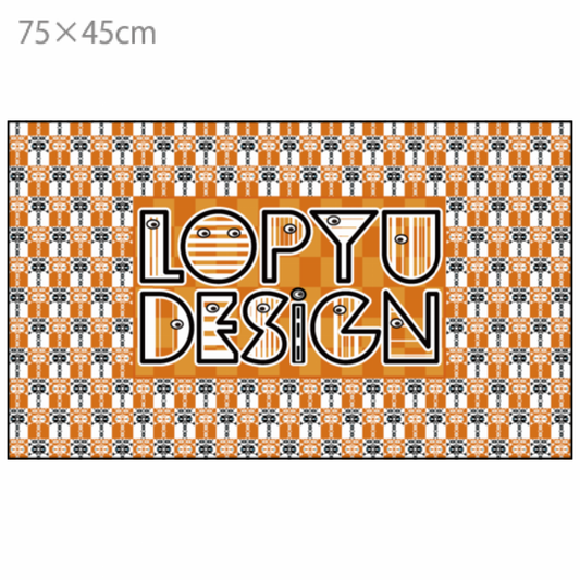 玄関マット(裏ゴム)LOPYUDESIGNオレンジイジドール格子柄 75×45