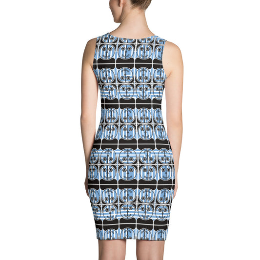 昇華プリントカットソーワンピース・青輪イジドール模様モダン【CA001- CSOP022】