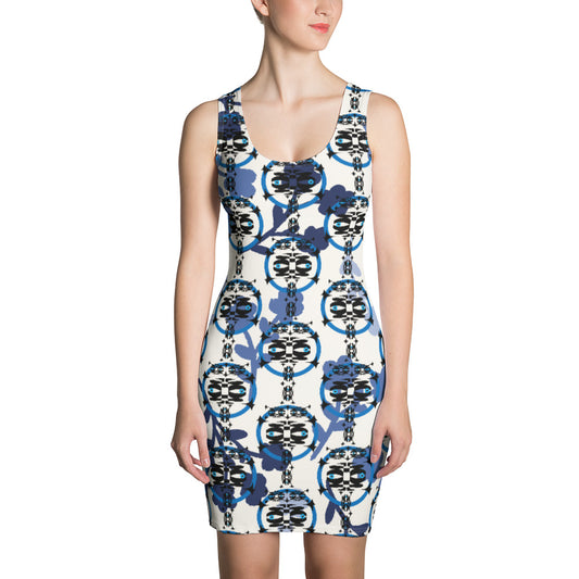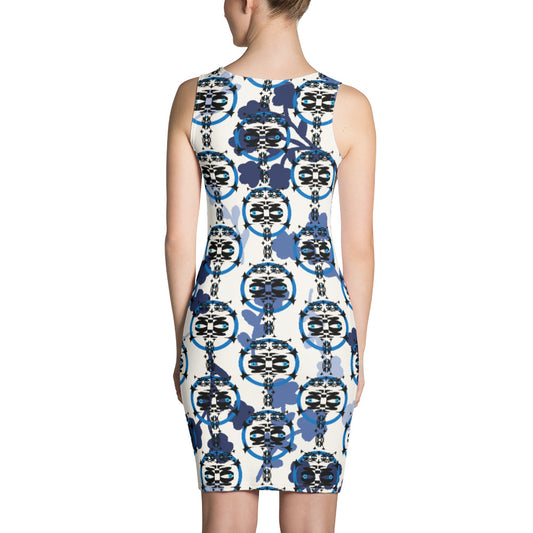 昇華プリントカットソーワンピース・青輪イジドール模様白【CA001- CSOP004】