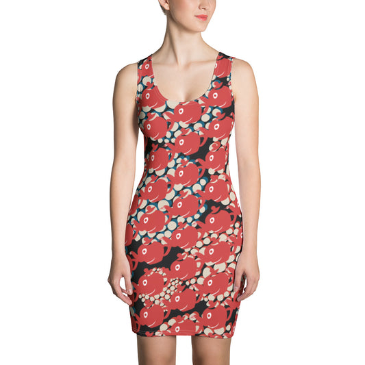 昇華プリントカットソーワンピース・赤ティーブレーカーモダン【LC001- CSOP020】