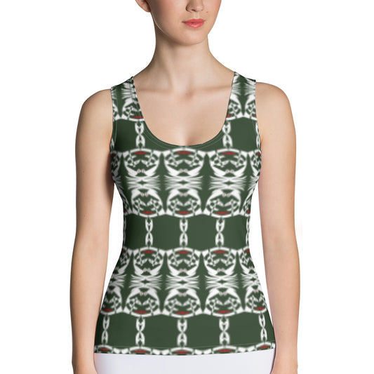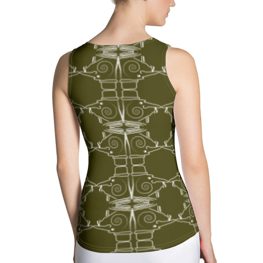 昇華プリントカットソータンクトップ・青輪イジドール模様薄緑【CA001- CSTT002】