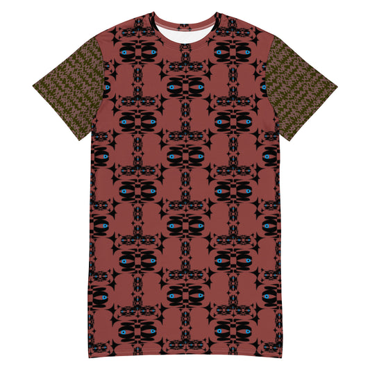 Tシャツワンピース・イジドール模様テラコッタ【CA001- TOP003】