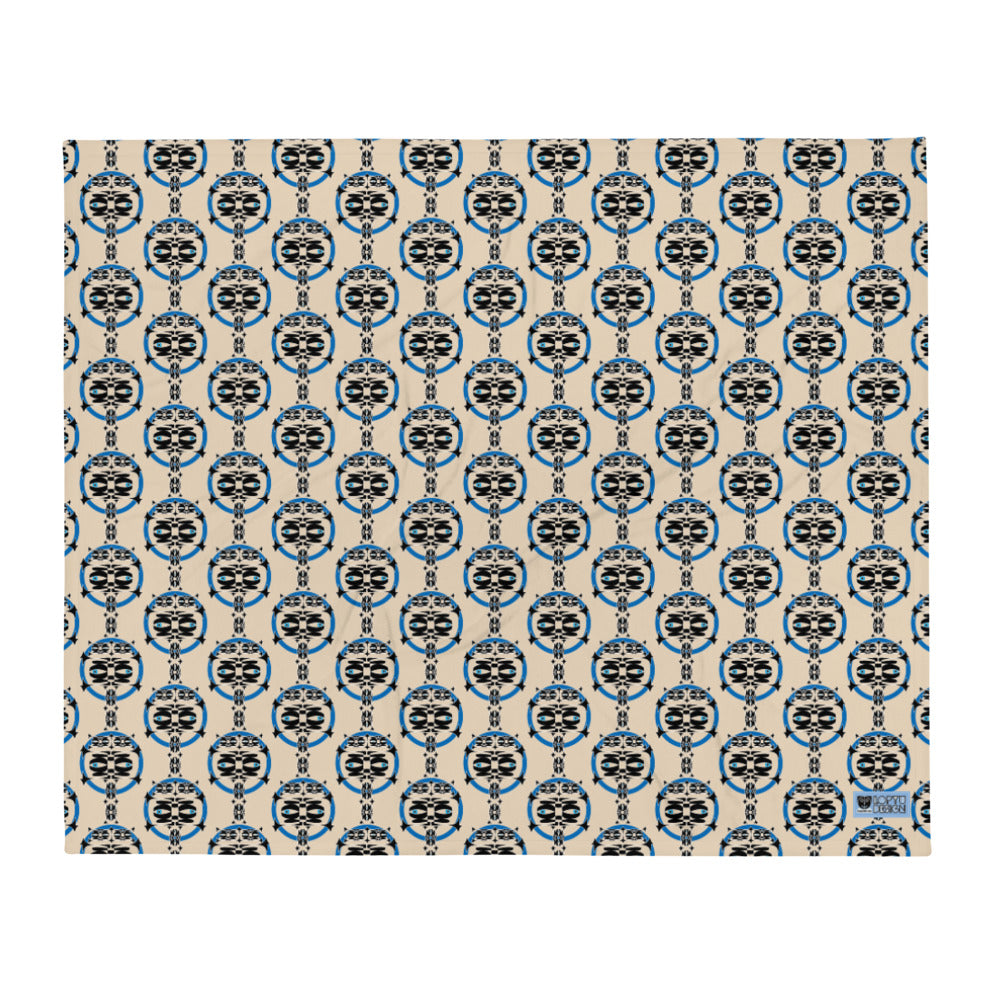 ふわふわひざかけ・青イジドール模様ベージュ地【CA001- BK002】