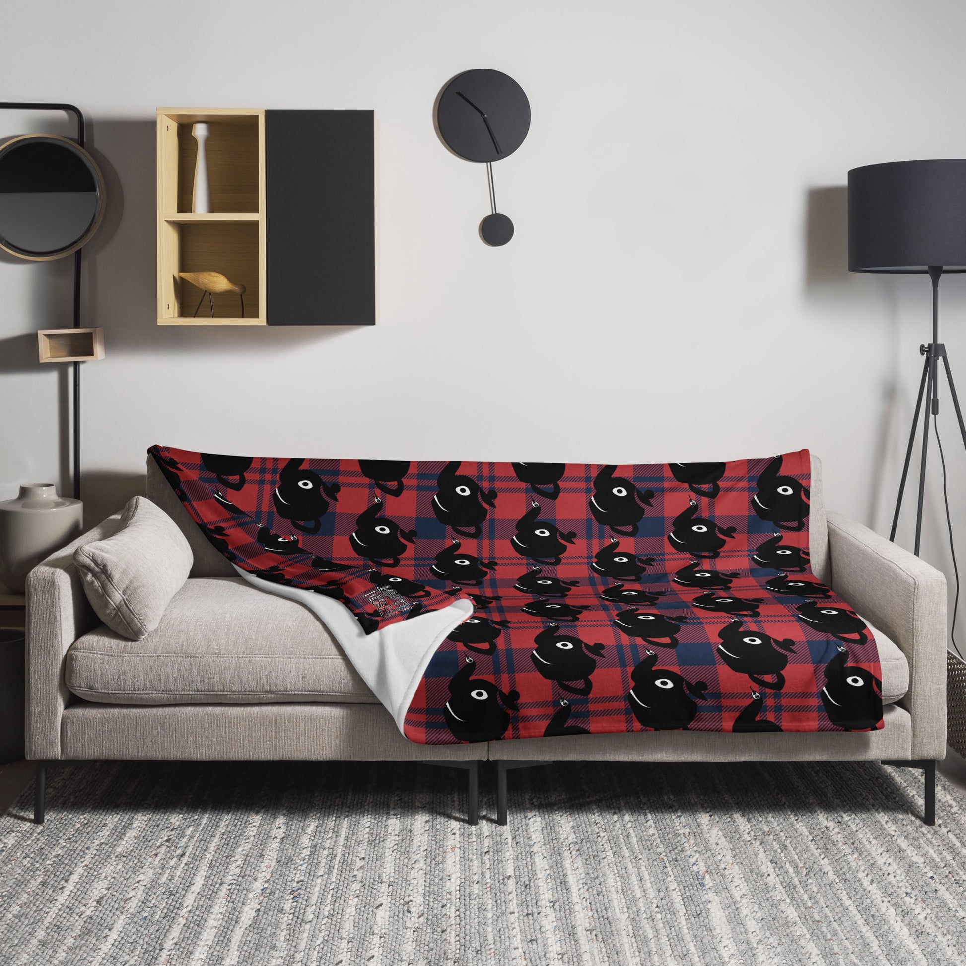ふわふわひざかけ・黒ティーブレーカーチェックモダン【LC001-BK007】