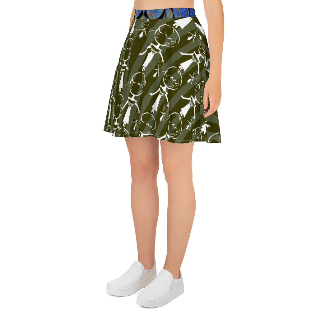 スケータースカート・白マダムペシェーラ模様カーキ【CA015- SSK007】