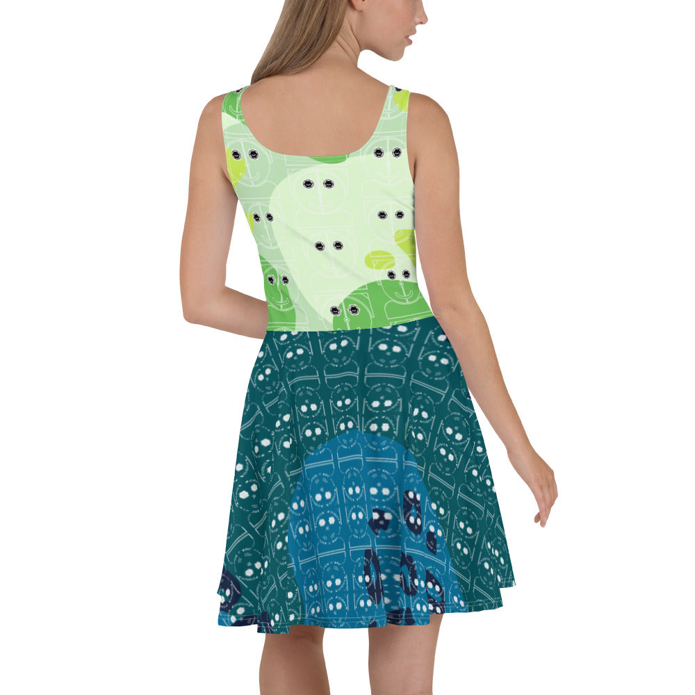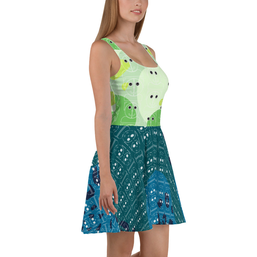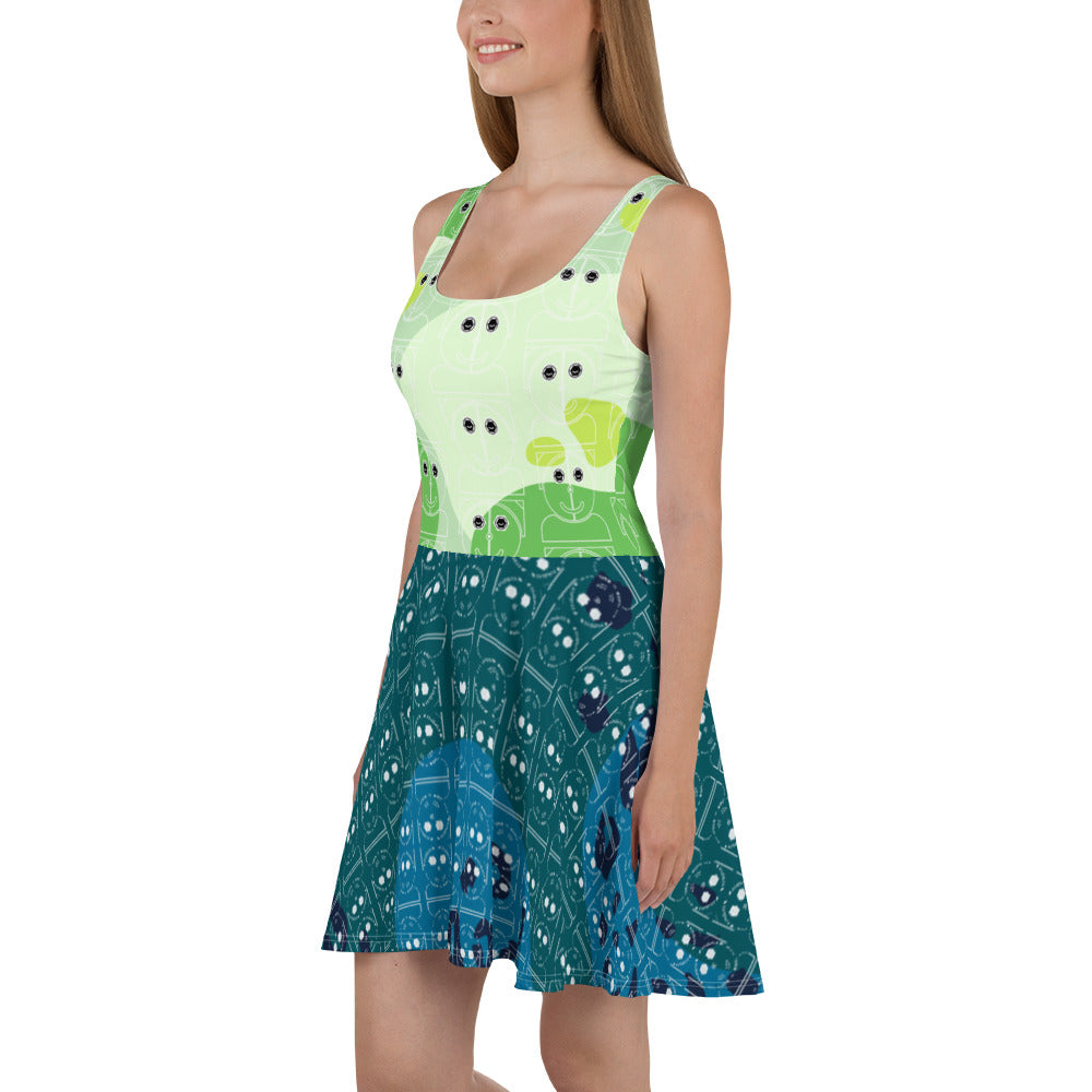 袖なしのスケーターワンピースでおしゃれを。柔らかい生地とフレアカットのスカートが上品な印象を与え、精密なデザインが美しく鮮やかな一着です。