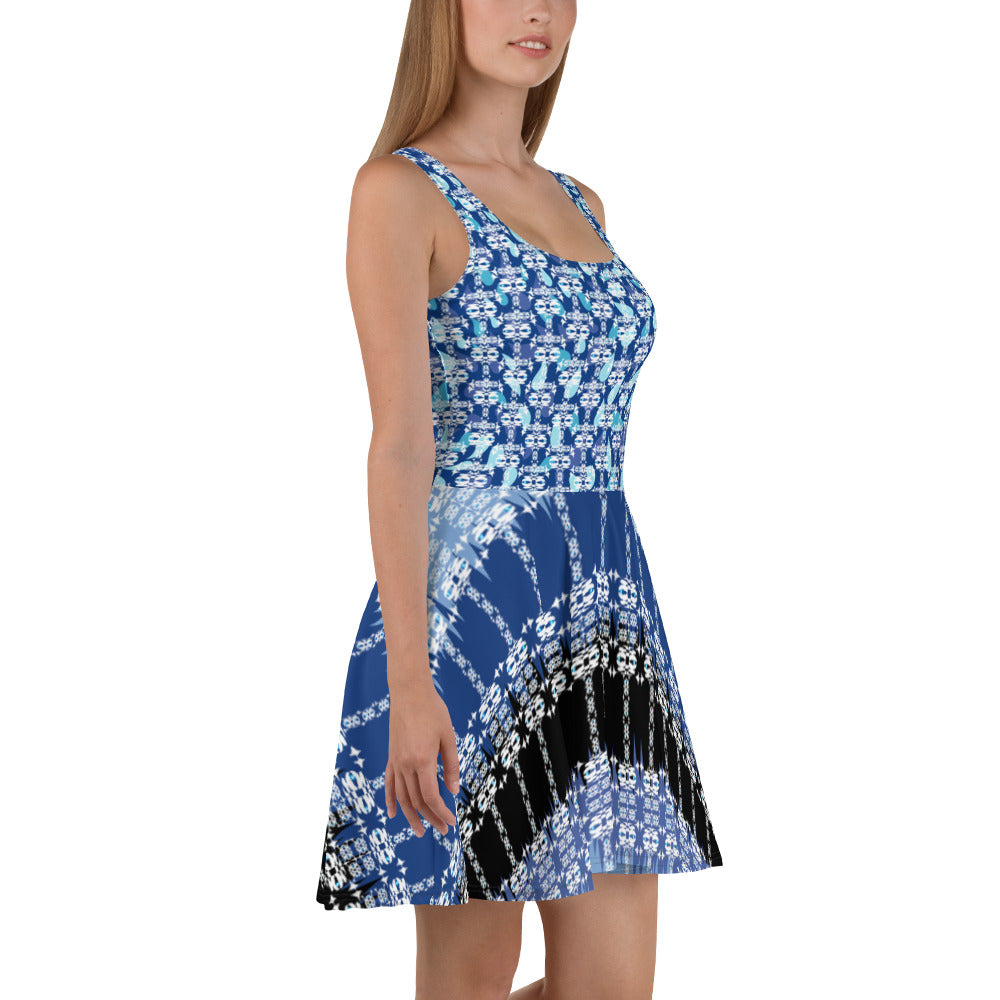 袖なしのスケーターワンピースでおしゃれを。柔らかい生地とフレアカットのスカートが上品な印象を与え、精密なデザインが美しく鮮やかな一着です。