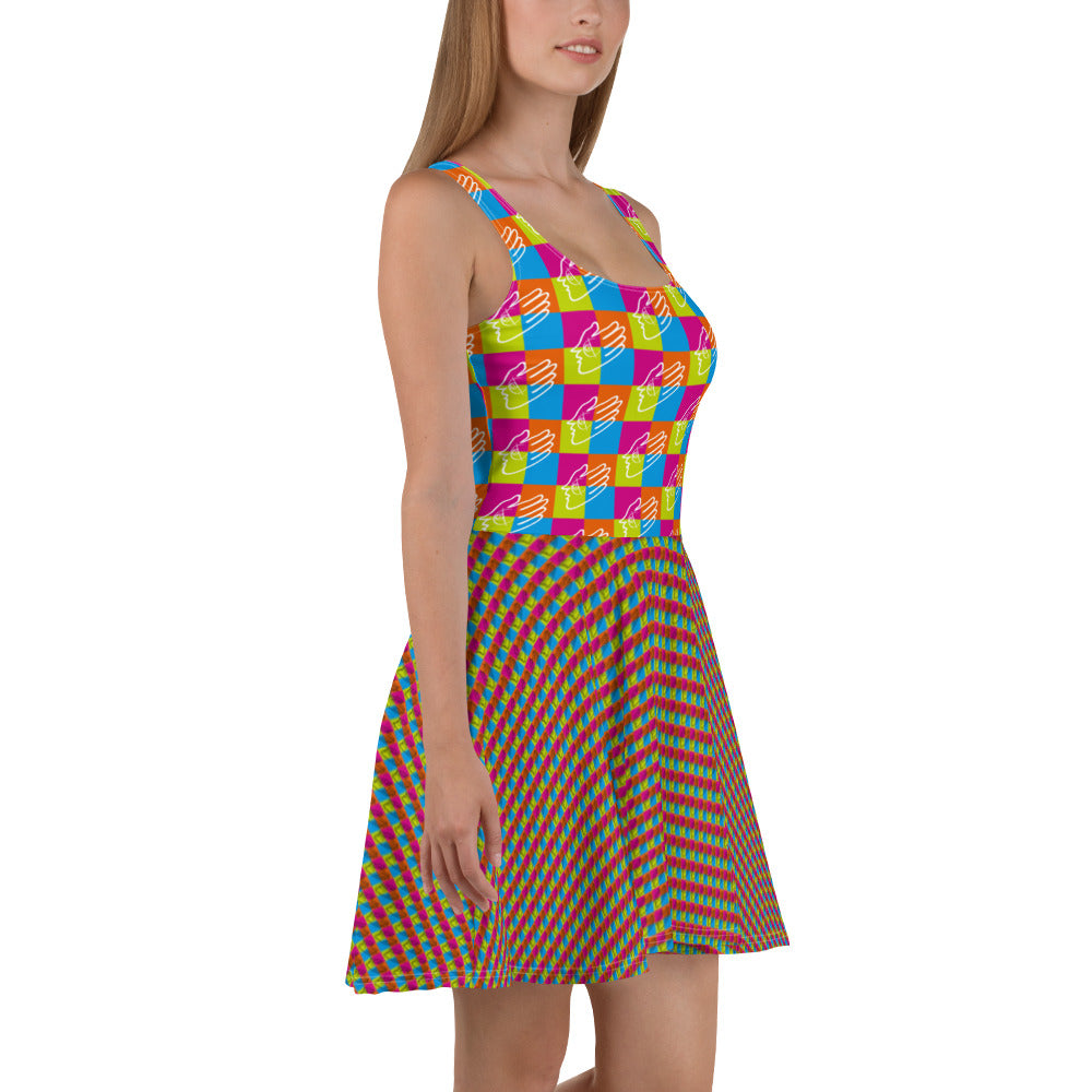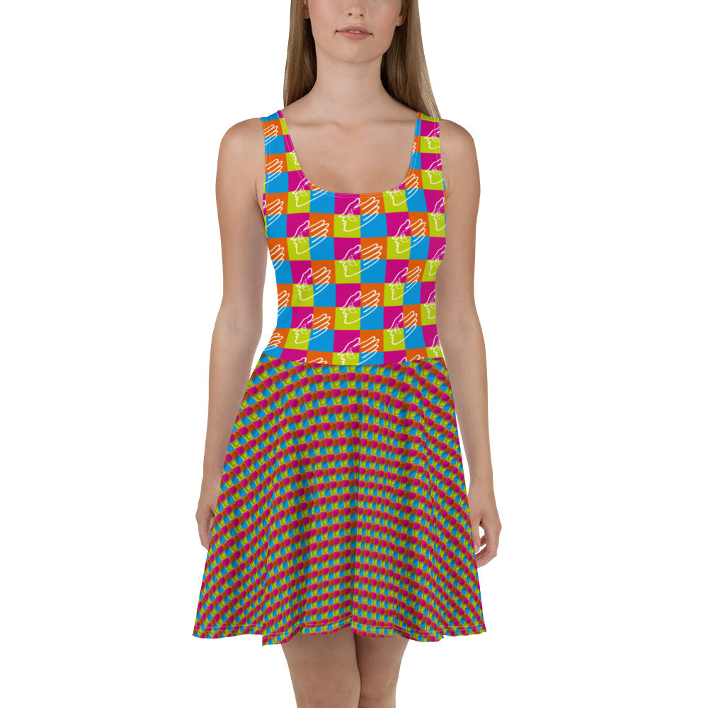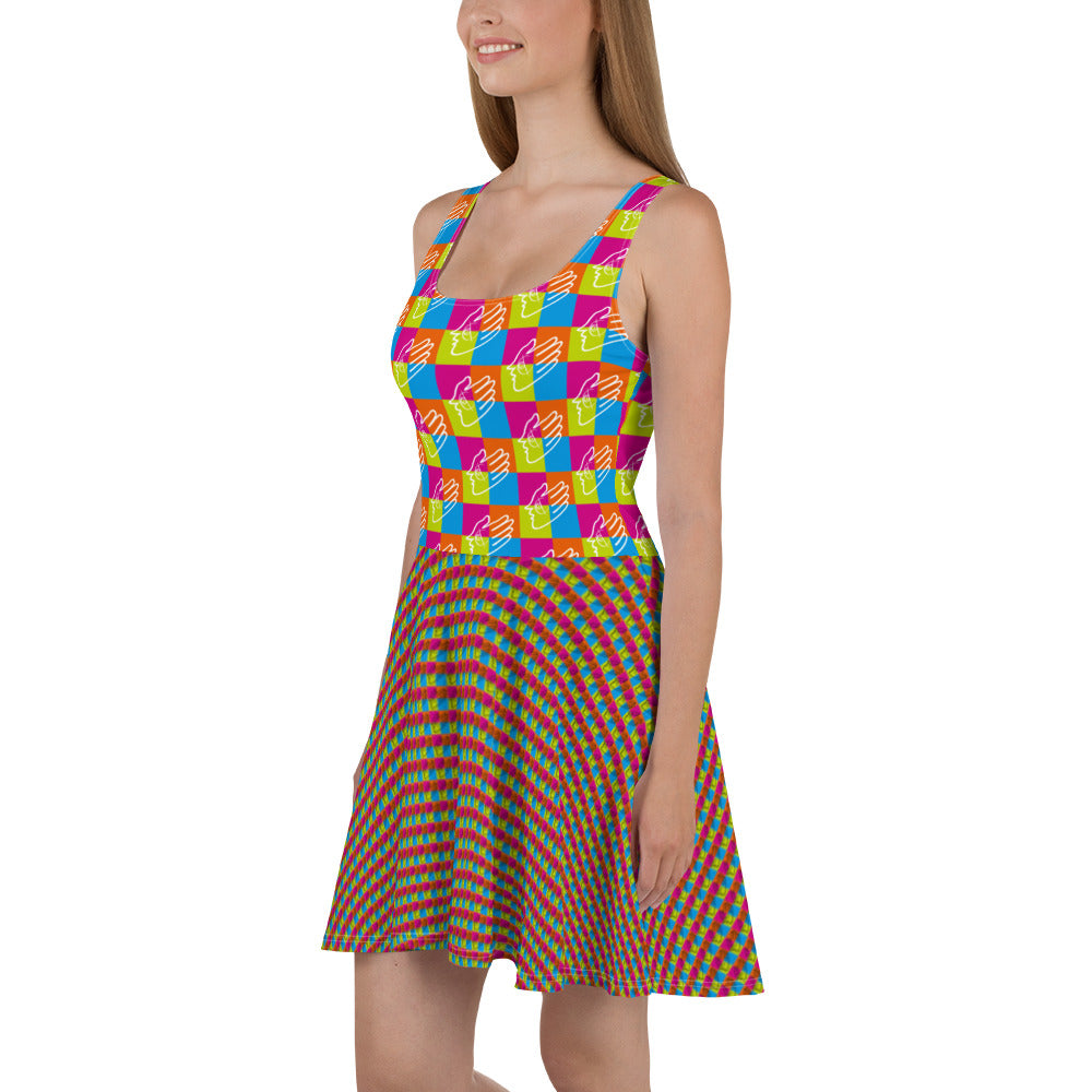 袖なしのスケーターワンピースでおしゃれを。柔らかい生地とフレアカットのスカートが上品な印象を与え、精密なデザインが美しく鮮やかな一着です。