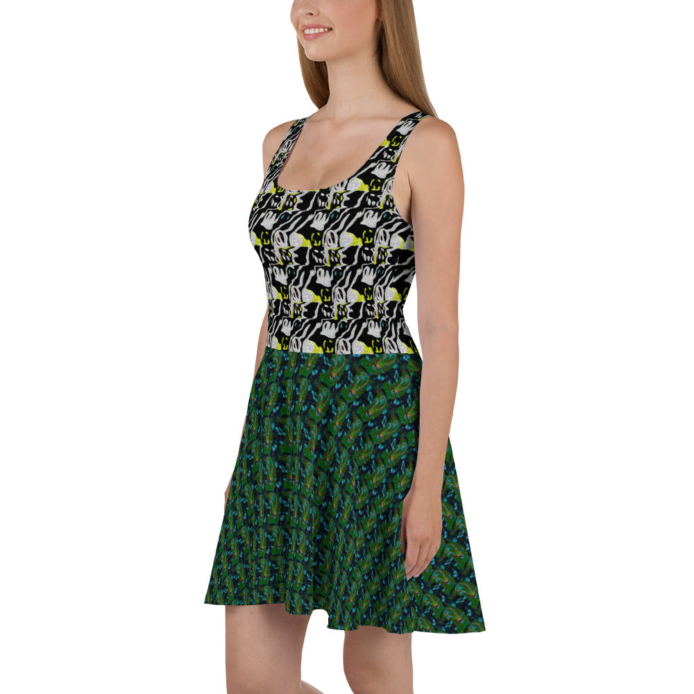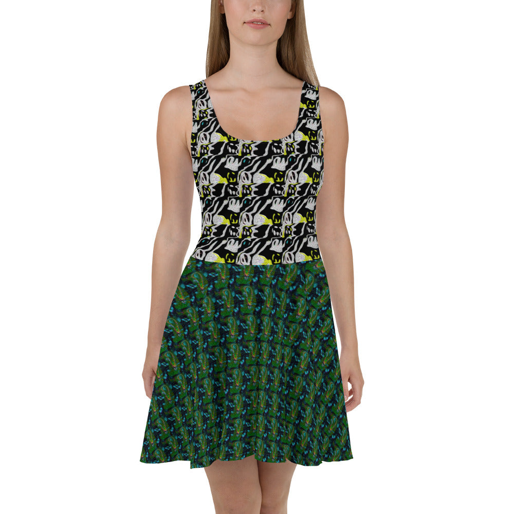 袖なしのスケーターワンピースでおしゃれを。柔らかい生地とフレアカットのスカートが上品な印象を与え、精密なデザインが美しく鮮やかな一着です。