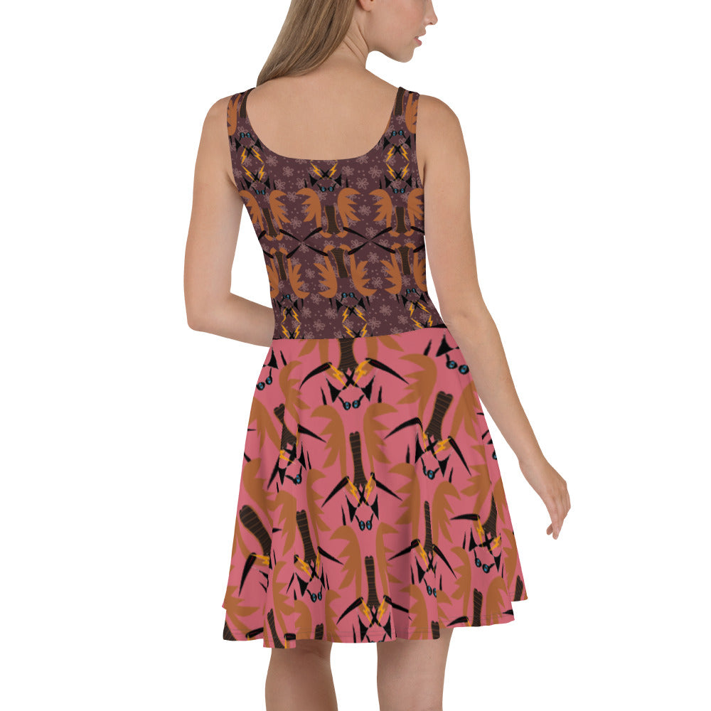 袖なしのスケーターワンピースでおしゃれを。柔らかい生地とフレアカットのスカートが上品な印象を与え、精密なデザインが美しく鮮やかな一着です。