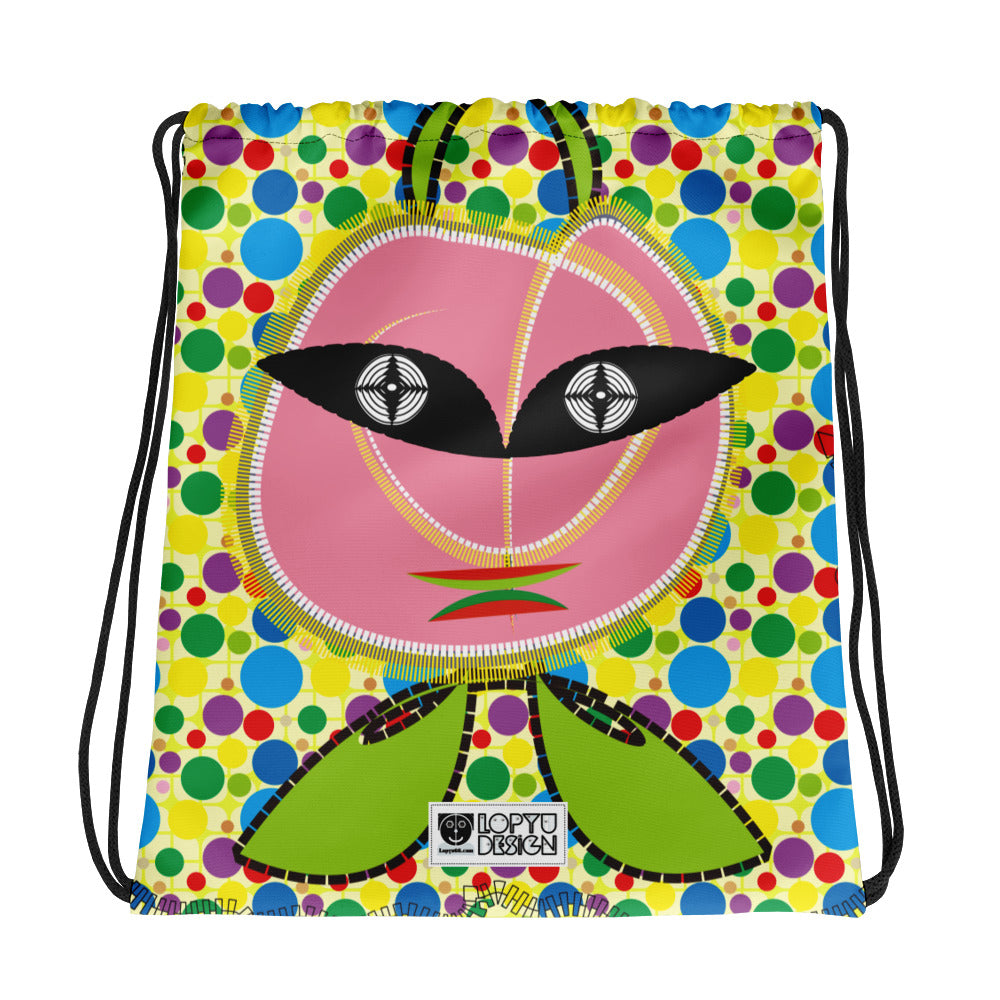 鮮やかなプリントとスポーティーなスタイルを組み合わせたおしゃれなドローストリングバック。バックパックとして使え、上部の引き紐と、細いコントラストカラーのショルダーストラップのついた、ジムに通うときの必需品です。