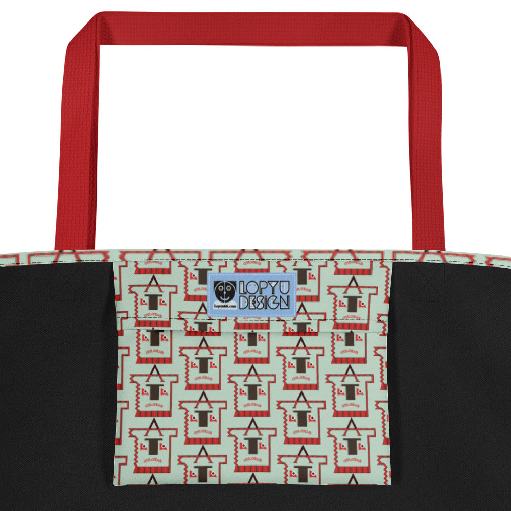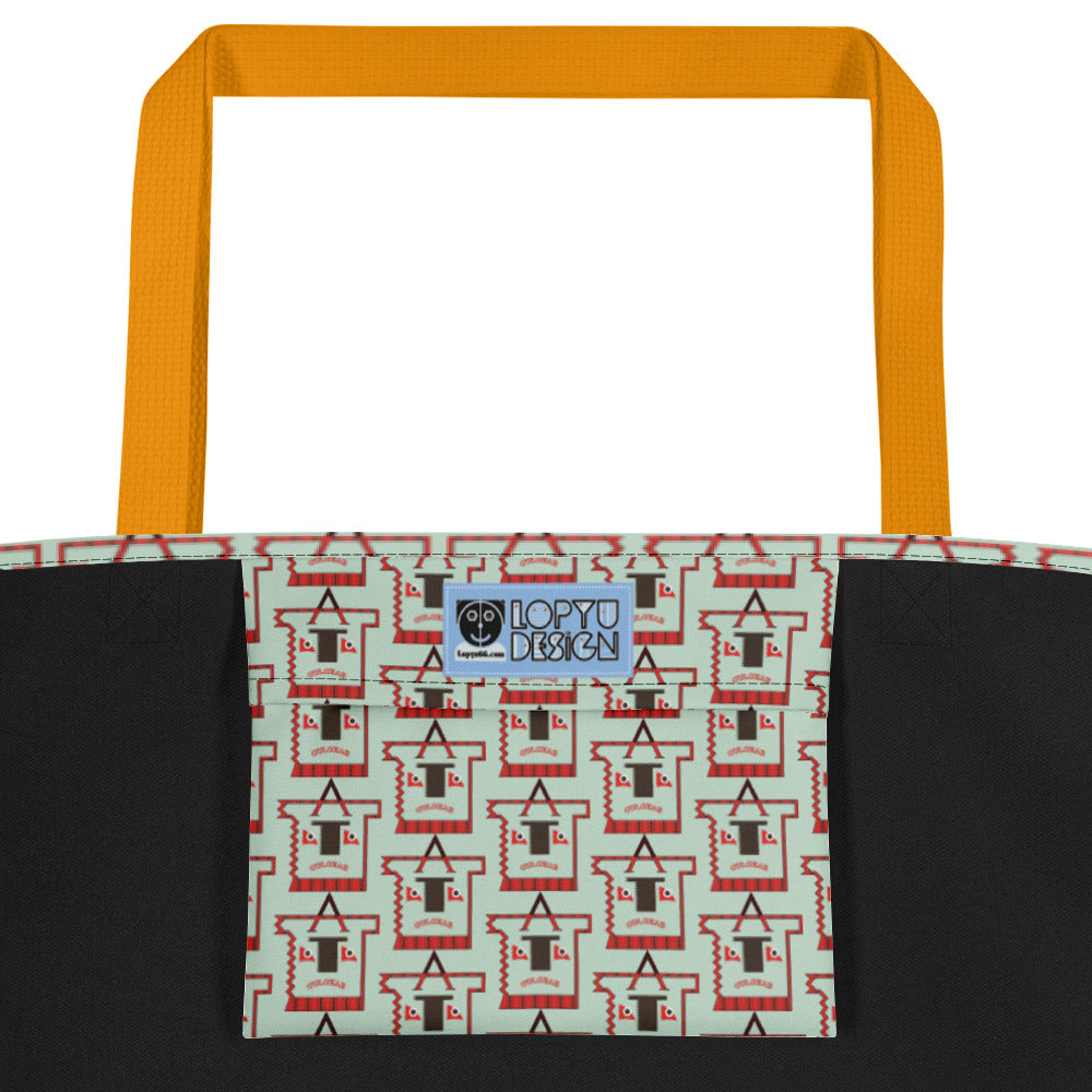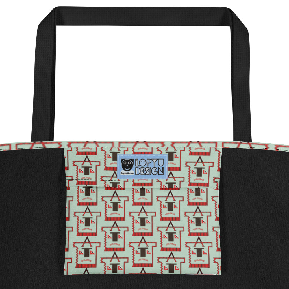 ビーチバッグ・トートカルチャー模様薄緑【LG010- BB005】
