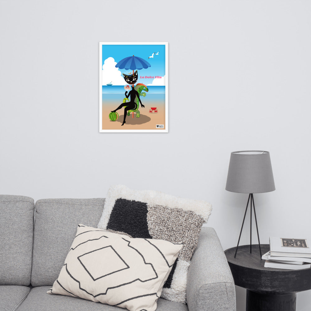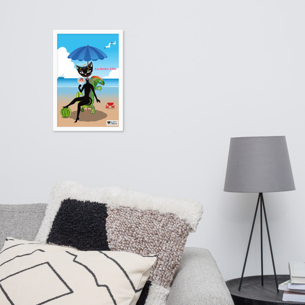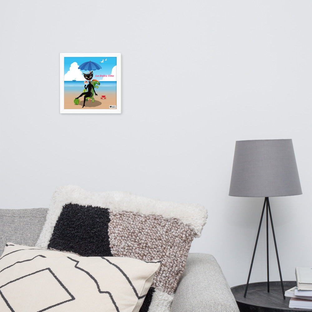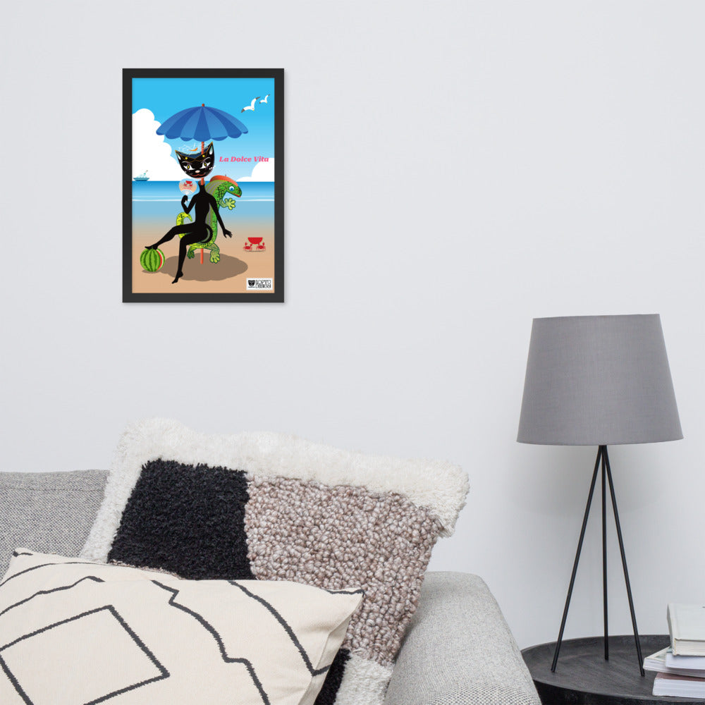 【フレーム付き】強化マットポスター・黒猫ガール「甘い生活」【IL005- FP016】