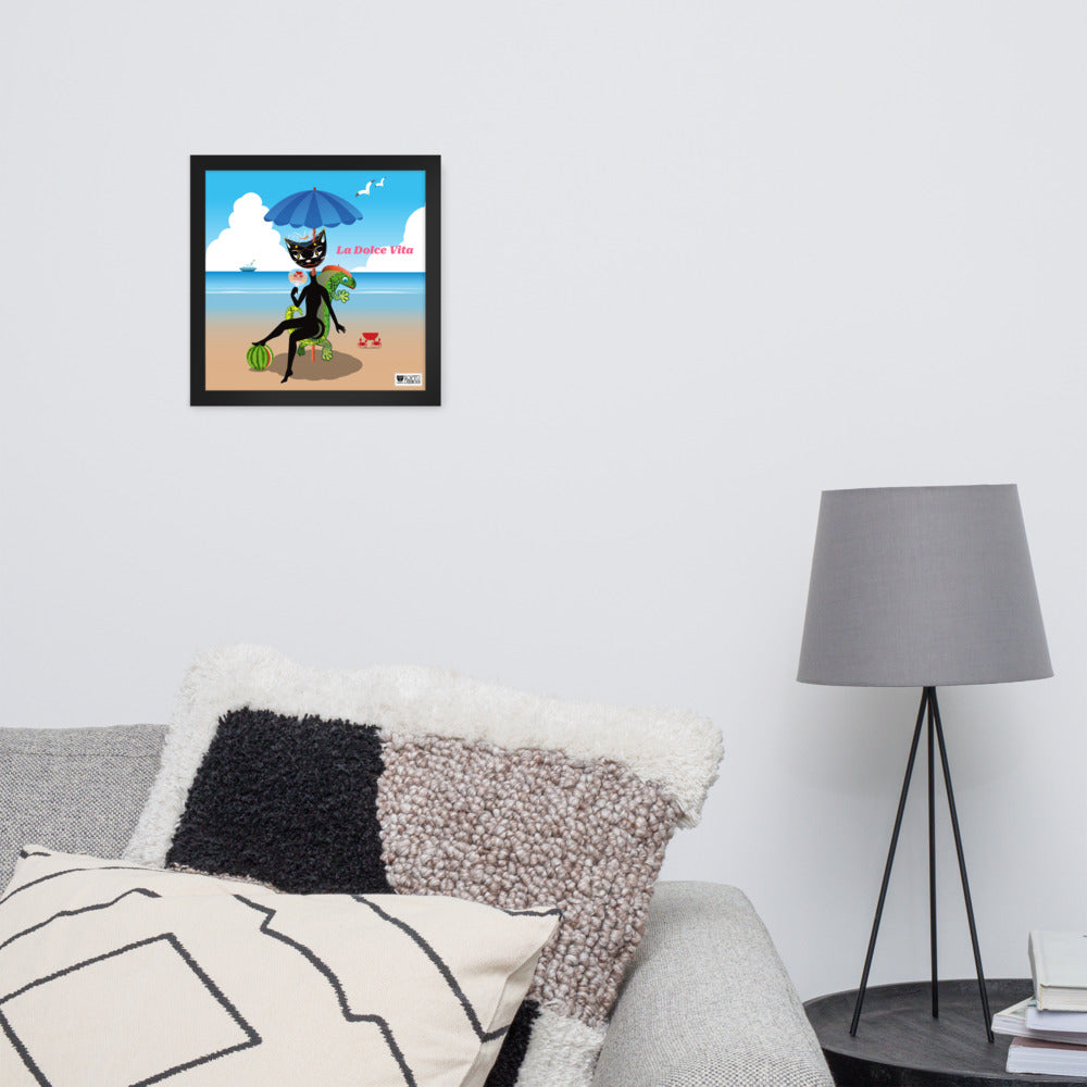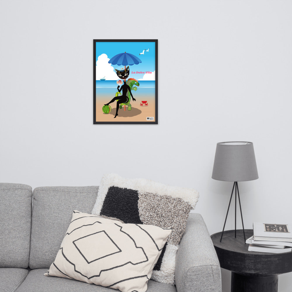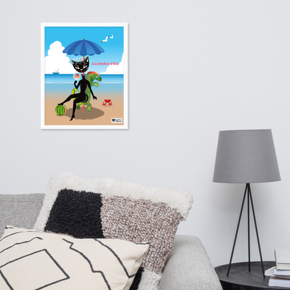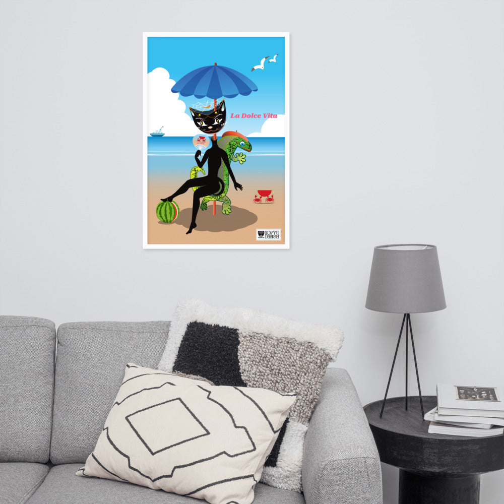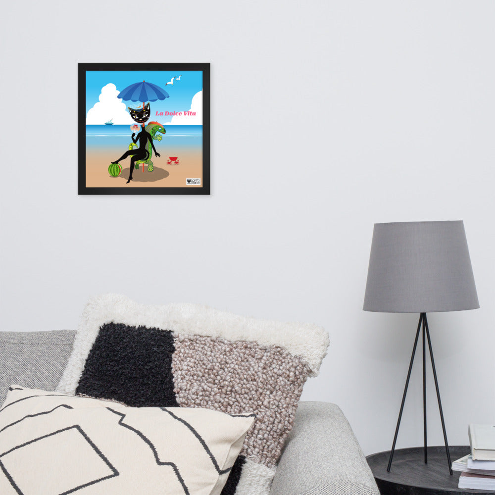 【フレーム付き】強化マットポスター・黒猫ガール「甘い生活」【IL005- FP016】