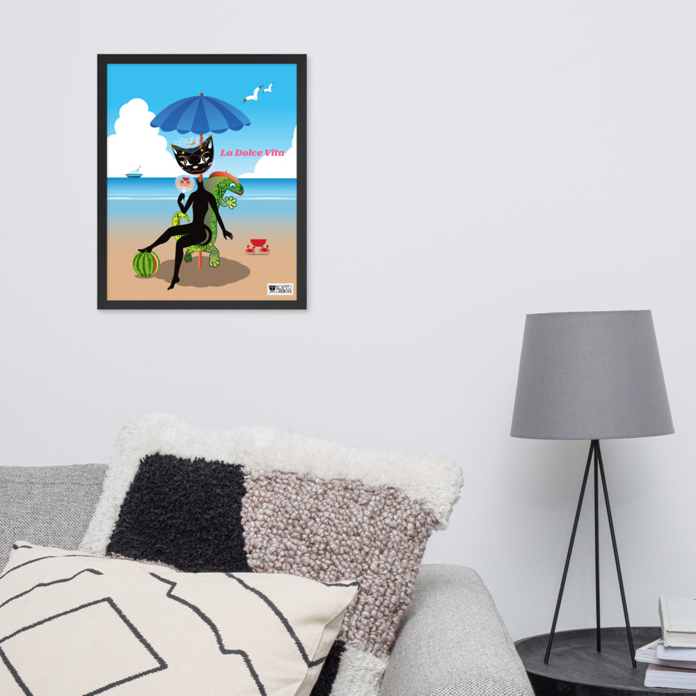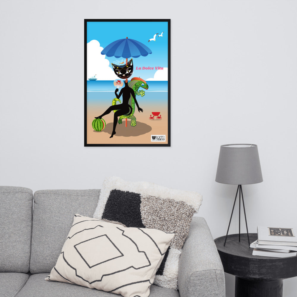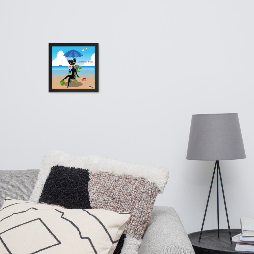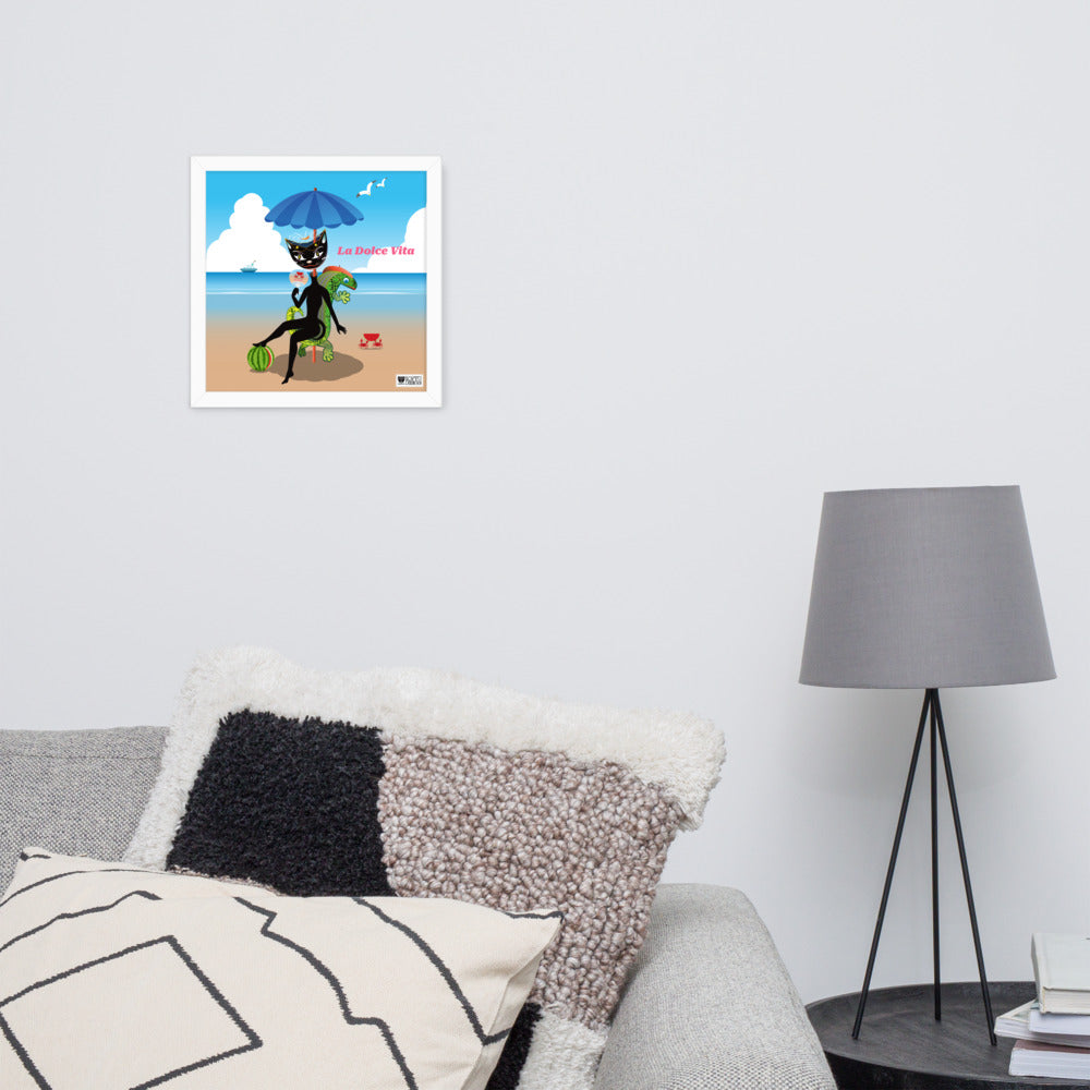 【フレーム付き】強化マットポスター・黒猫ガール「甘い生活」【IL005- FP016】