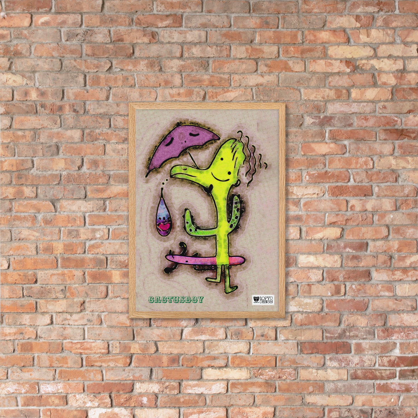 【フレーム付き】強化マットポスター・カクタスボーイ【IL007-FP045】
