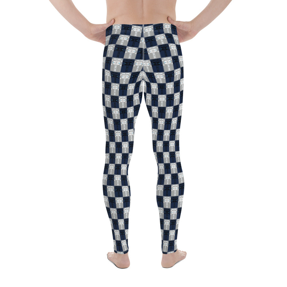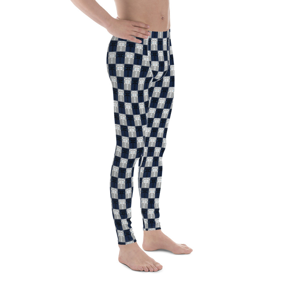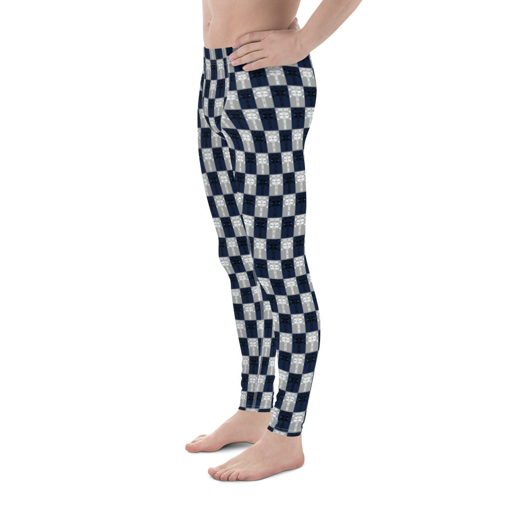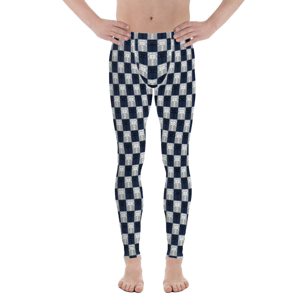 全面プリントメンズレギンス・イジドール格子柄ネイビー【CA001- LGM013】