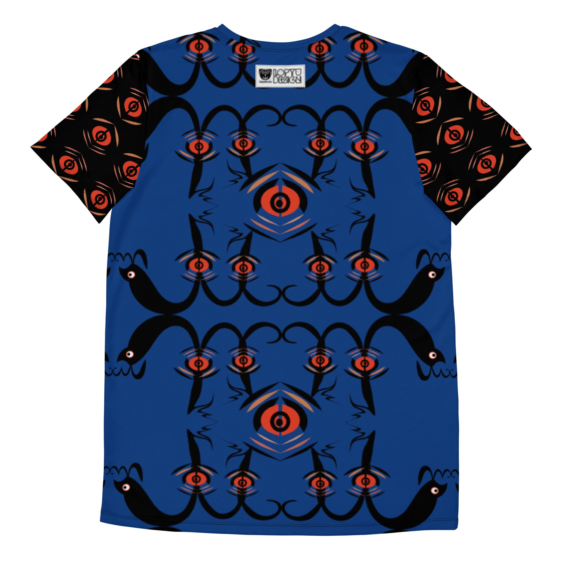 メンズ全面プリントアスレチックTシャツ・プルノウ青【CA071- TATM007】