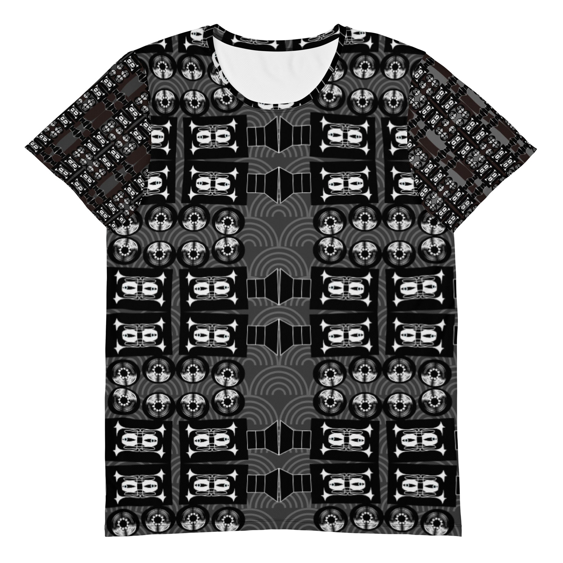 メンズ全面プリントアスレチックTシャツ・きゃらあくたあロゴ黒【LG003- TATM009】