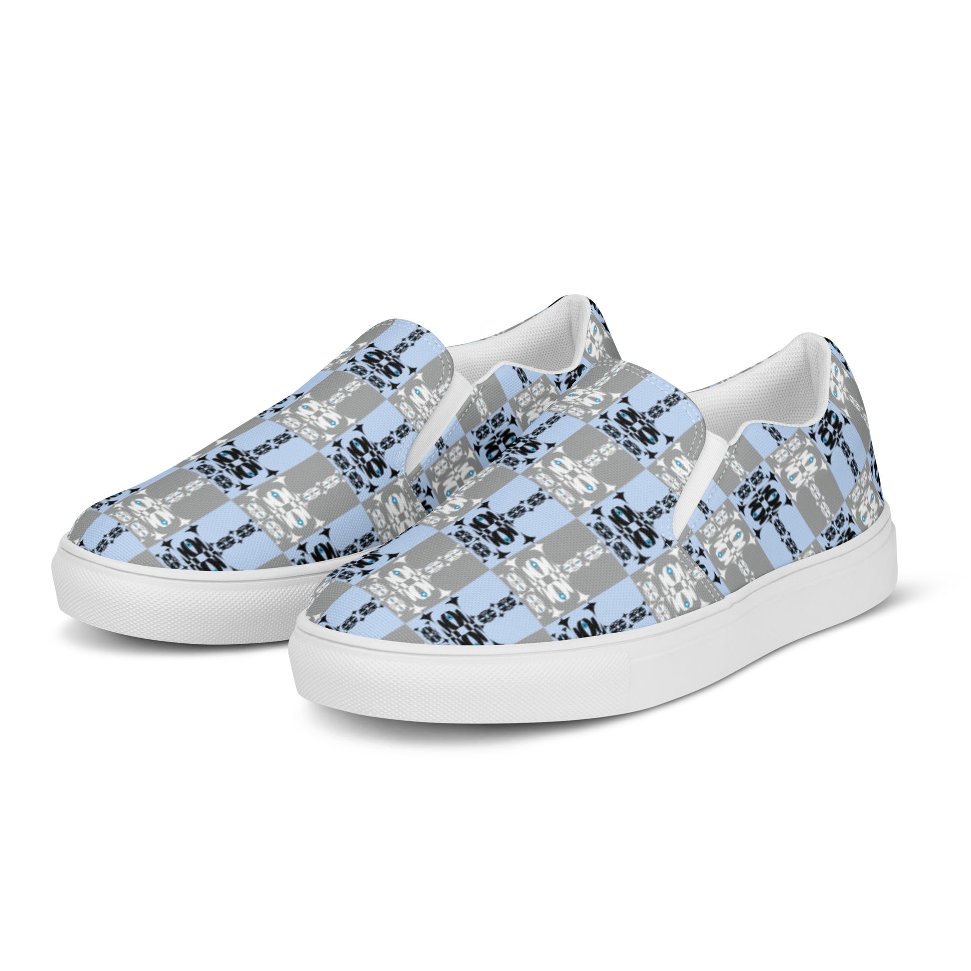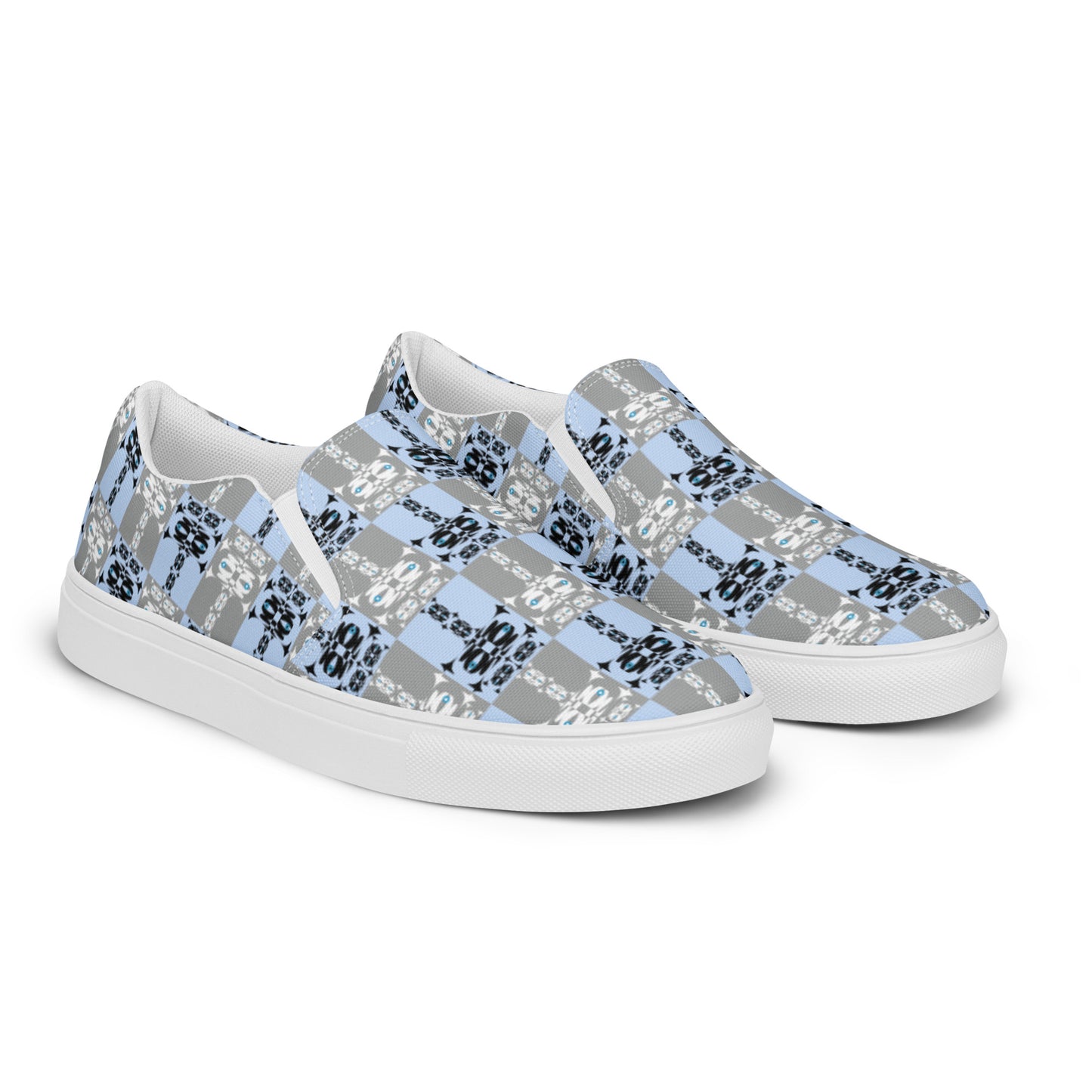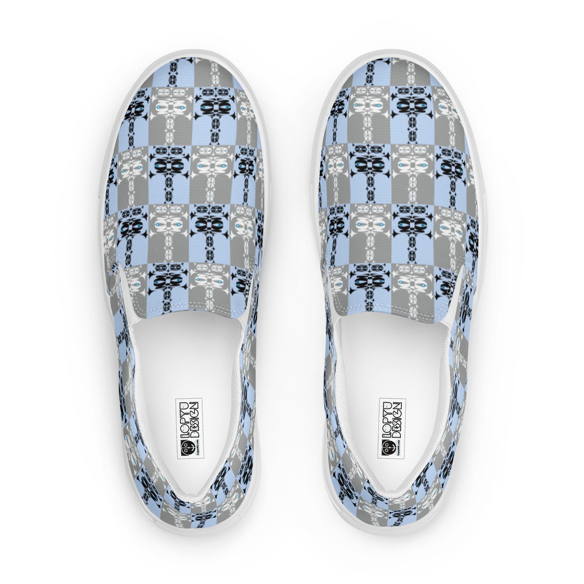 メンズ スリップオン キャンバスシューズ・イジドール格子柄ブルー【CA001- SCSM001】