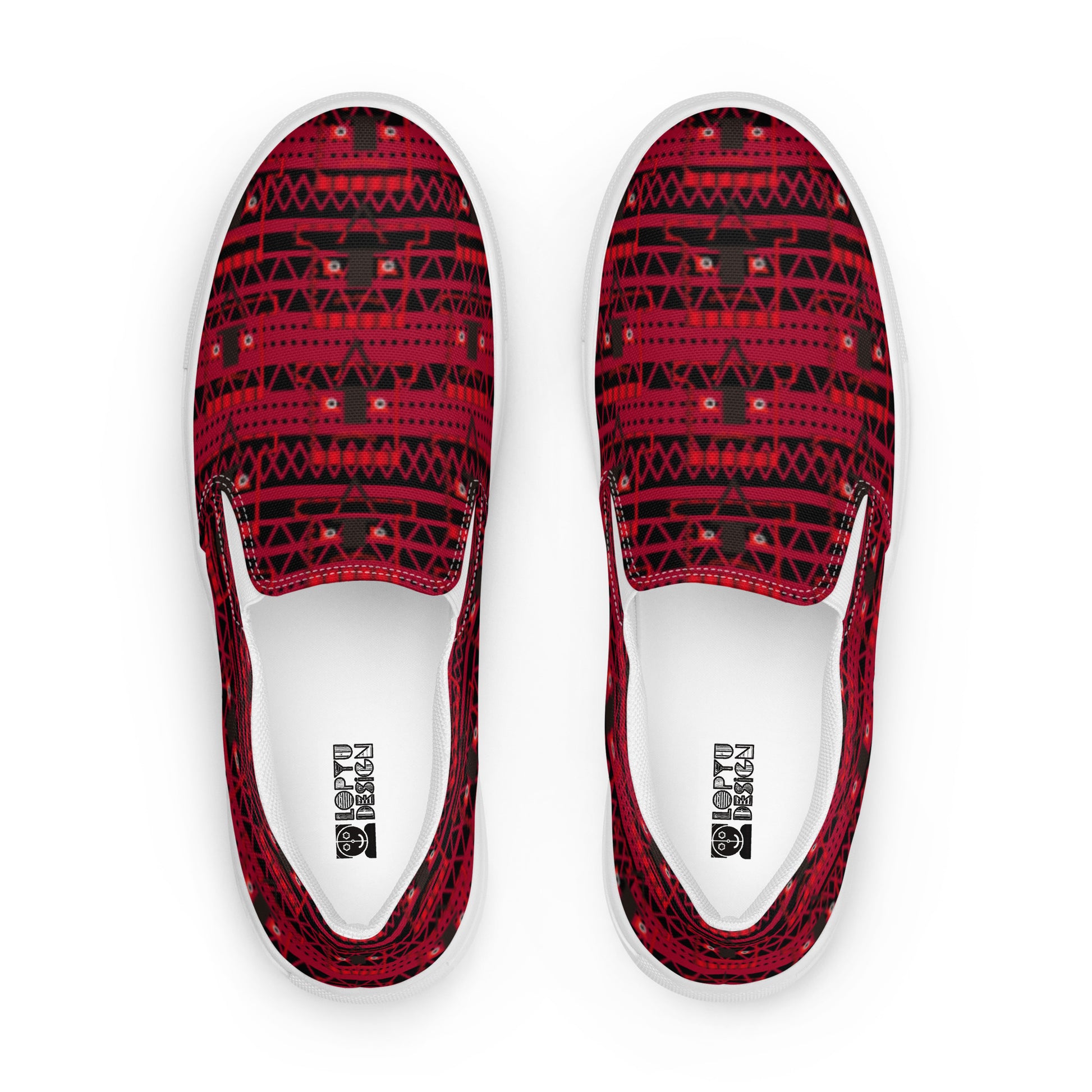 メンズ スリップオン キャンバスシューズ・トートカルチャーロゴ赤【LG001- SCSM009】