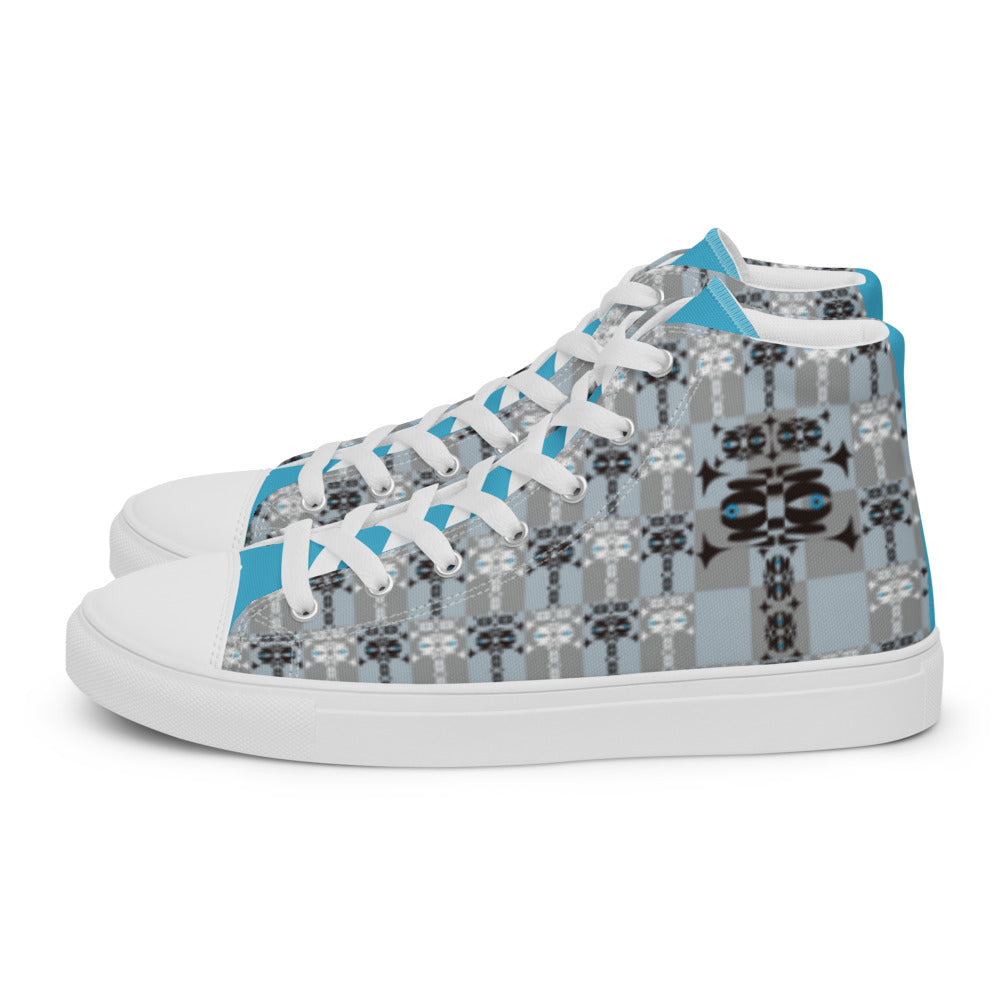 メンズ ハイカットスニーカー・イジドール格子柄α水色タン【CA001- HCSM002】