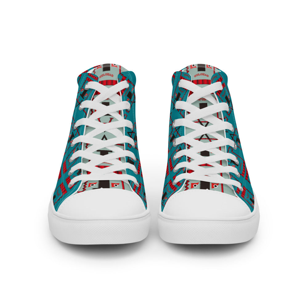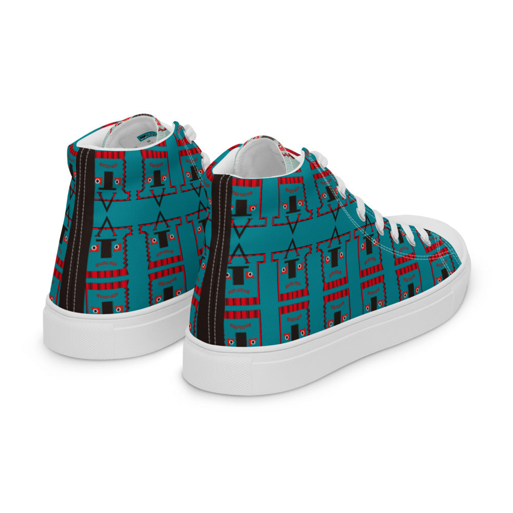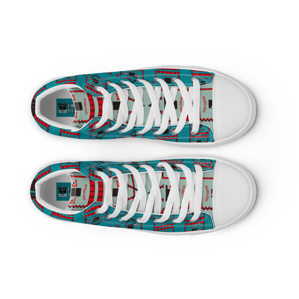 メンズ ハイカットスニーカー・トートカルチャー模様ブルー薄青タン【LG010- HCSM014】