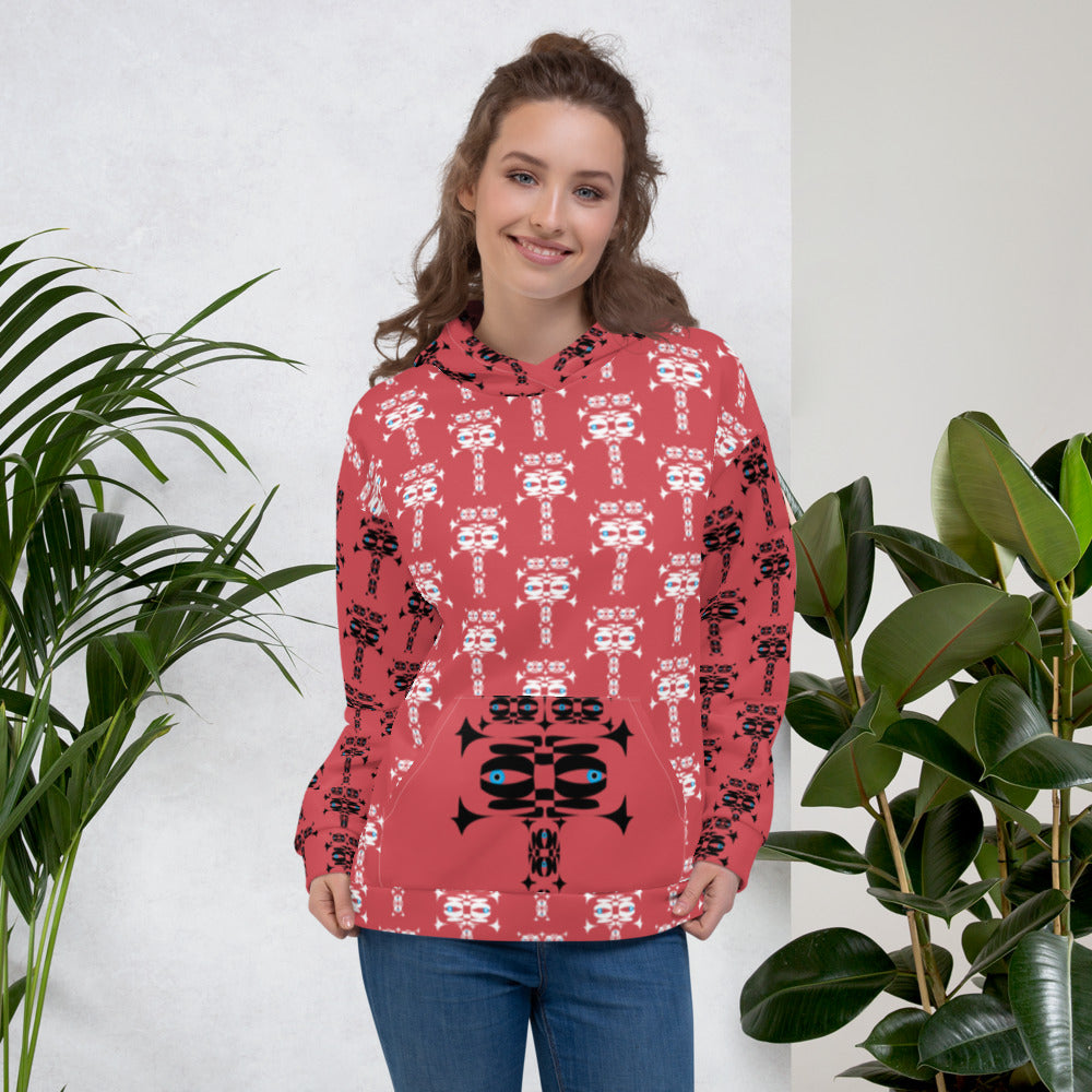 ユニセックスパーカー・白イジドール模様赤地【CA001- PKU004】