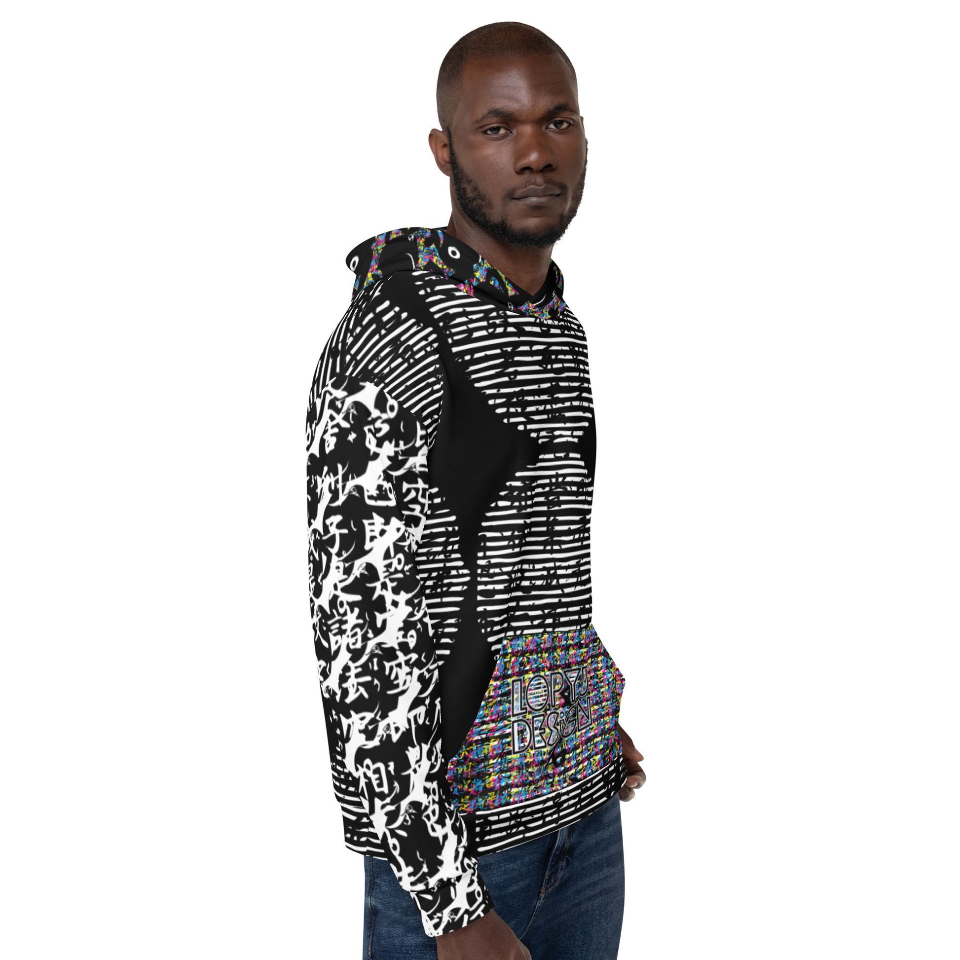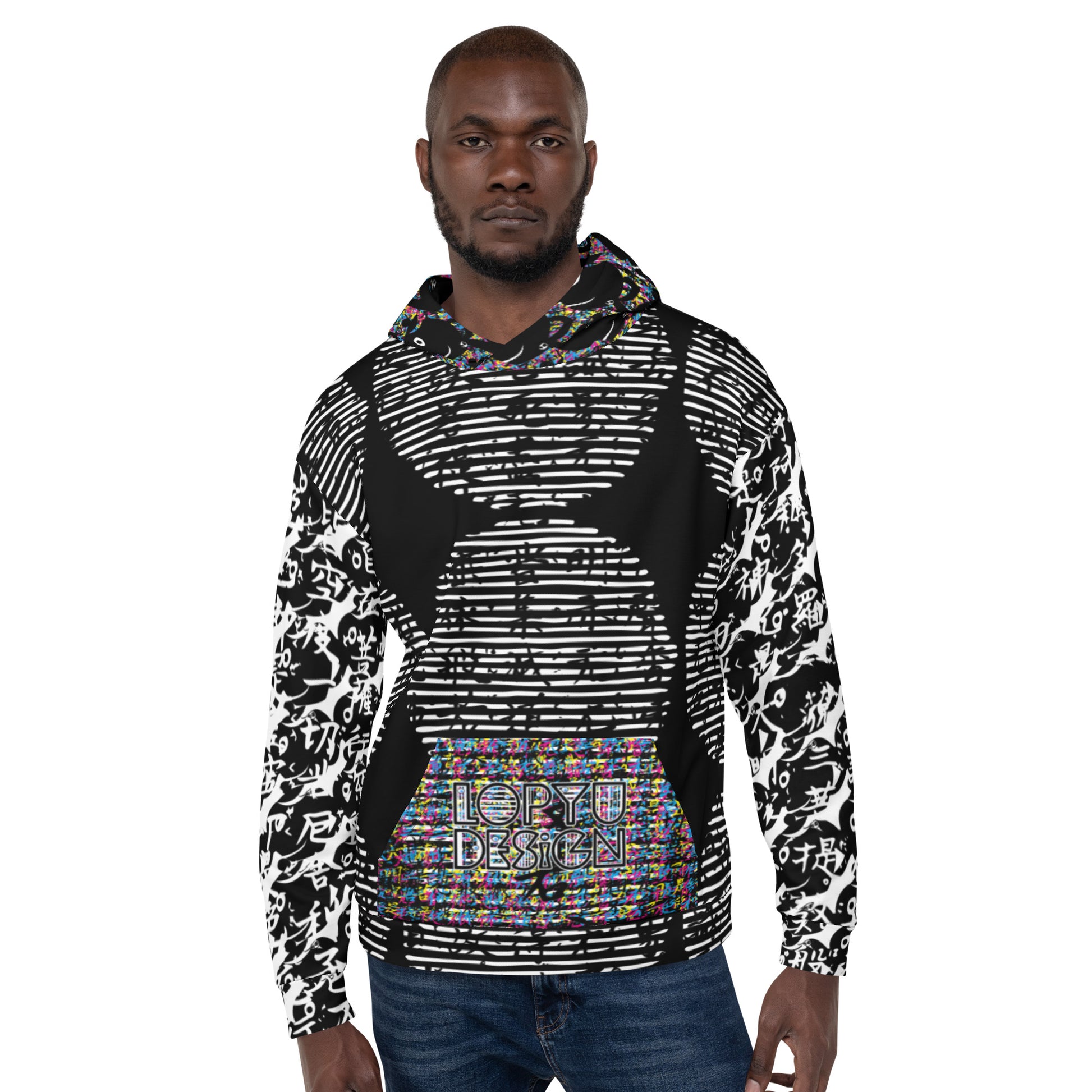 ユニセックスパーカー・黒ティーブレーカー般若心経MIXモダン【LC001-PKU027】