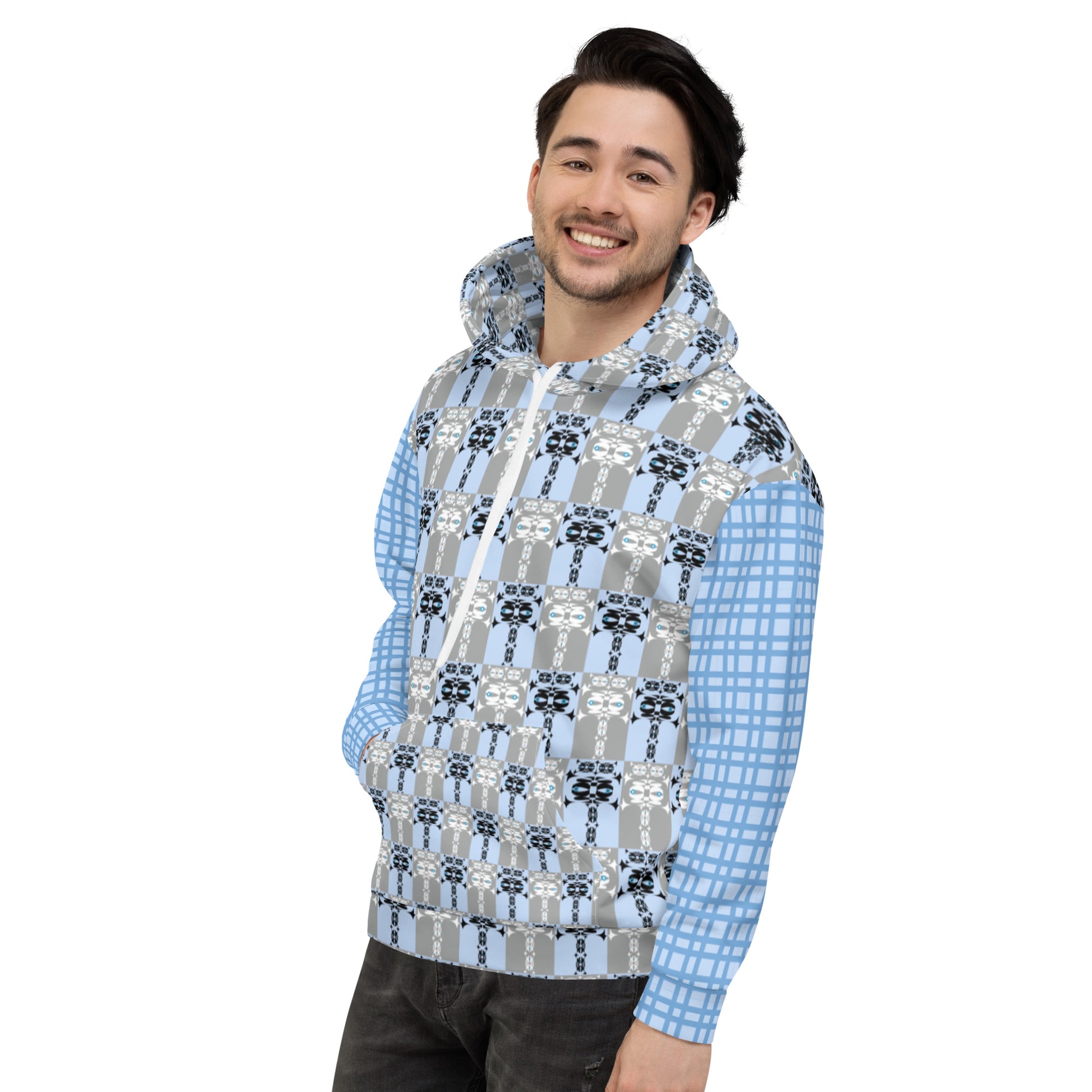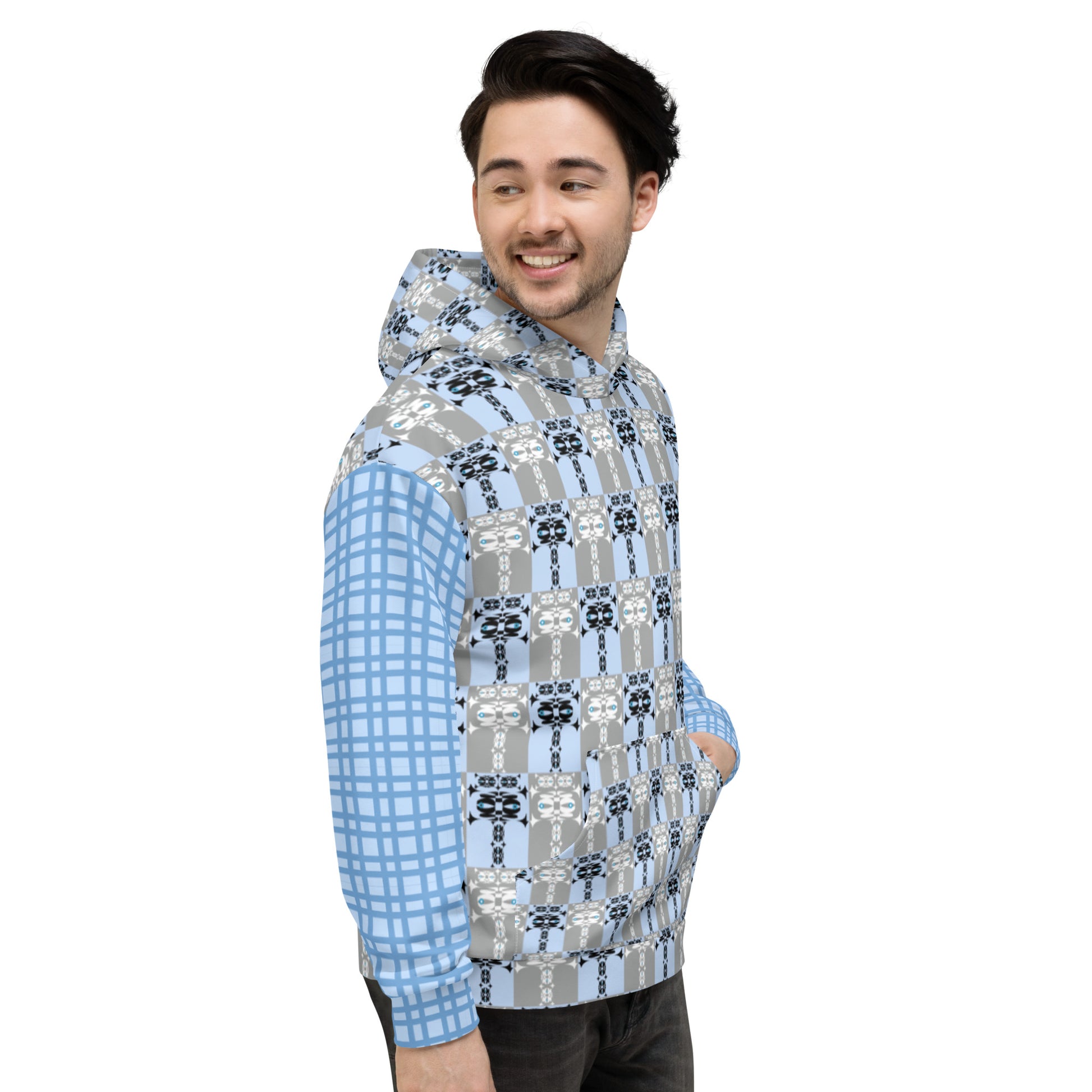 ユニセックスパーカー・イジドール格子水色地【CA001- PKU007】