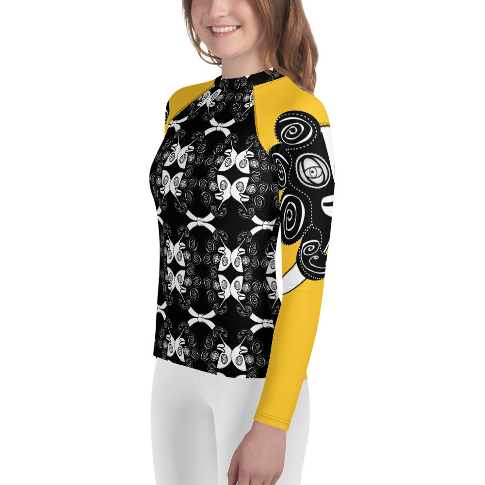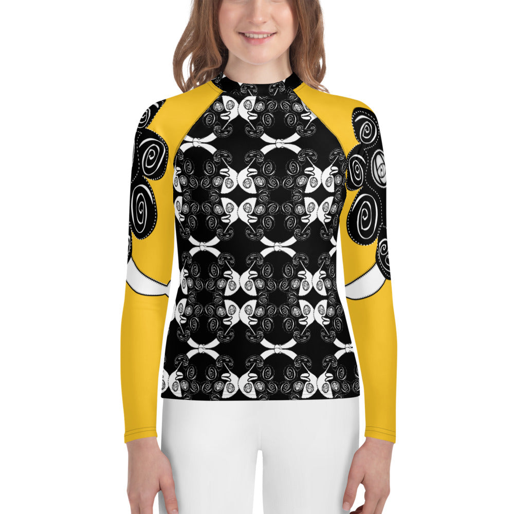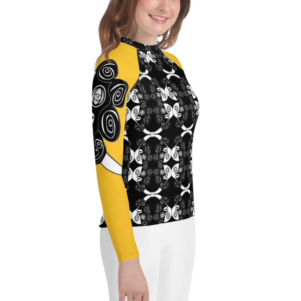 ユースラッシュガード・ラメコモノクロ黄袖【CA002- RGY02YW】