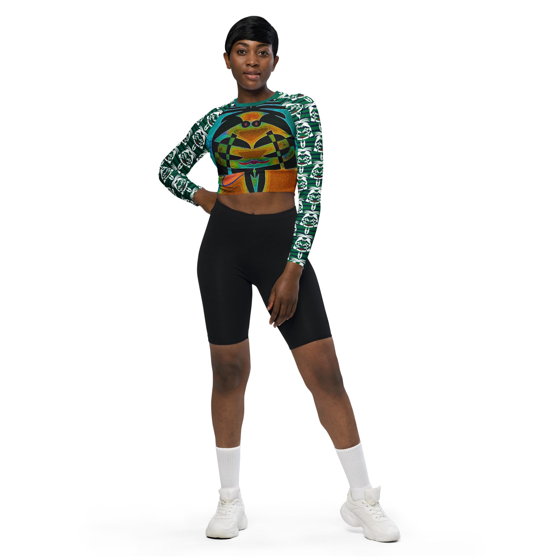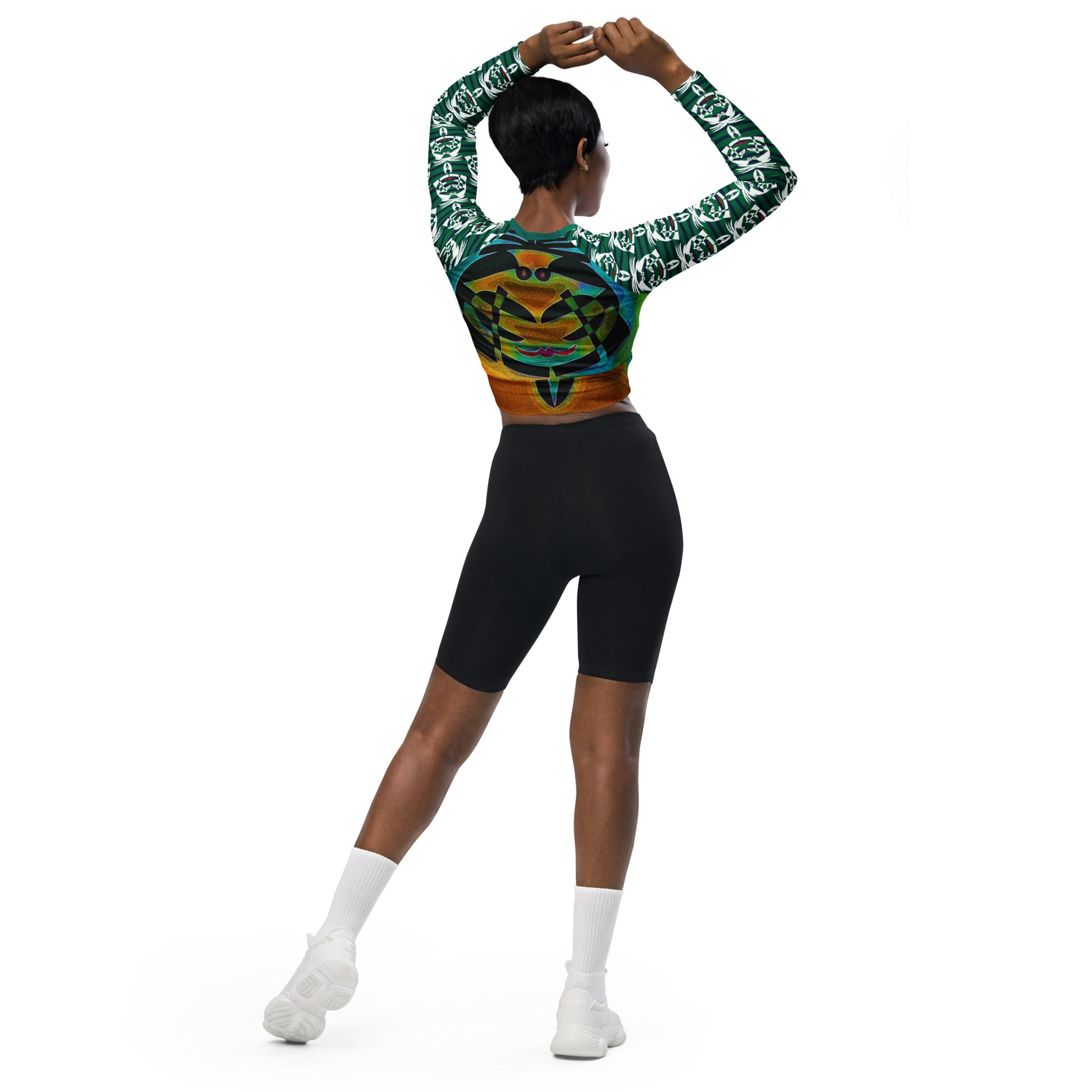 再生ポリエステルとポリウレタンを使用した長袖クロップトップは、水泳やスポーツ、レジャーを楽しむ時に便利な、環境にも配慮したアイテムです。Tear-away(ティアウェイ)タグが付き、ウエストは幅広の2重構造のためゆったりしたフィットです。