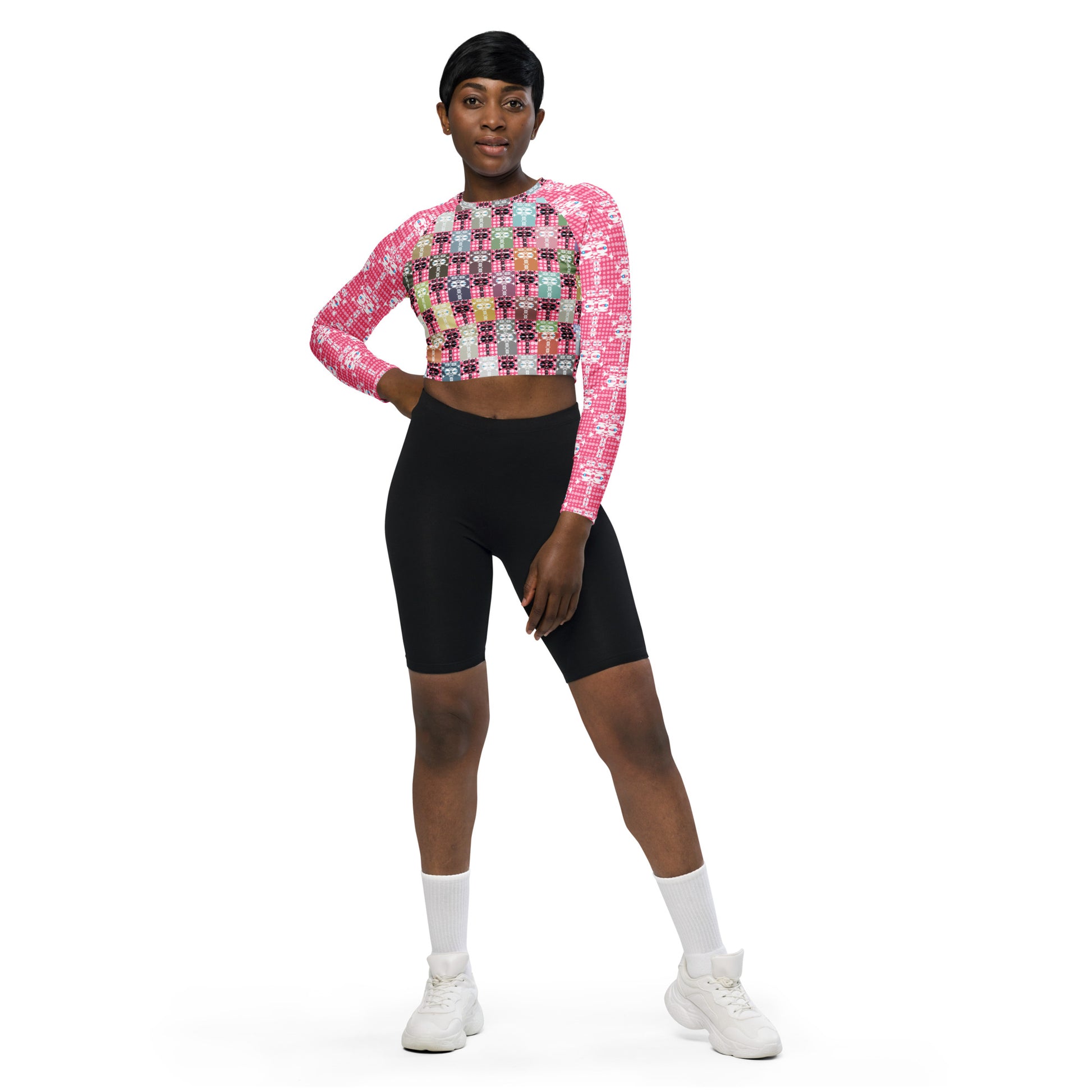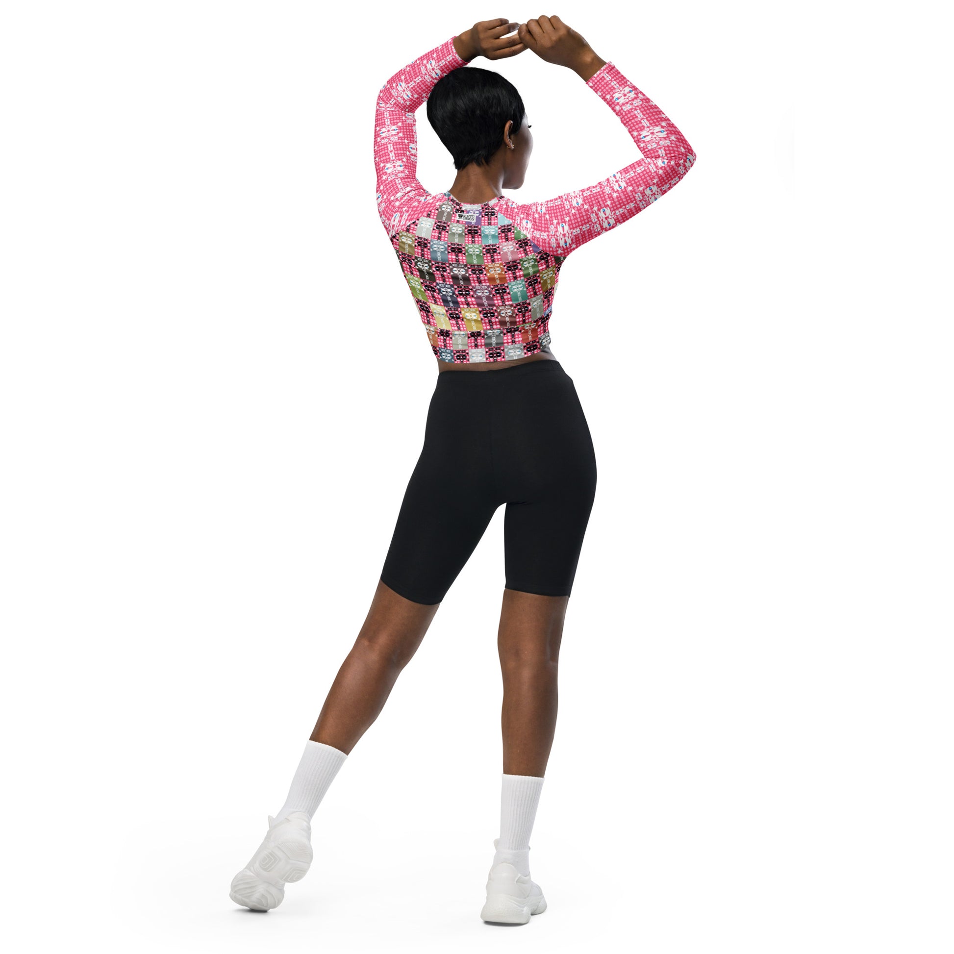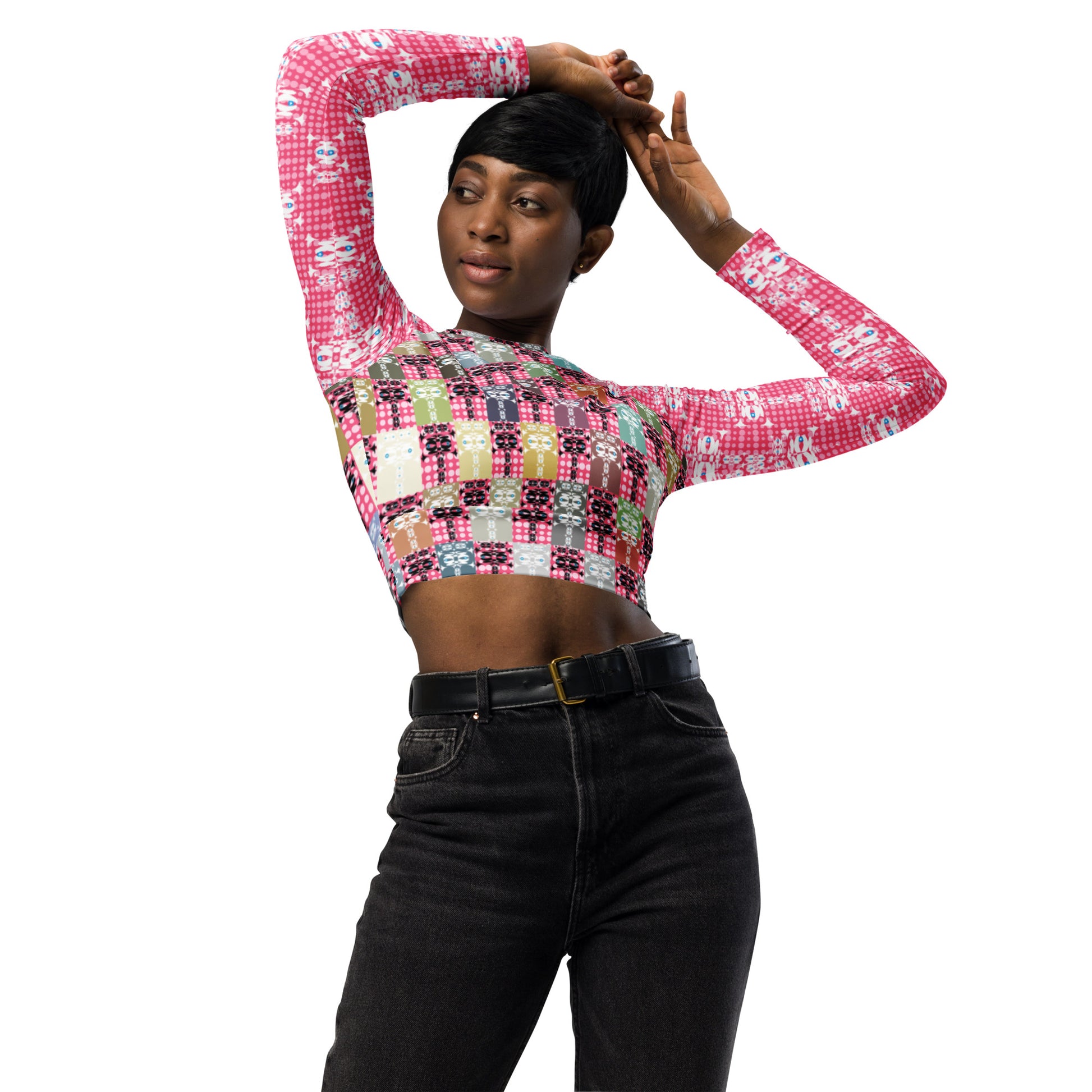 リサイクル素材 長袖クロップトップ・・イジドール格子ピンクドッツ【CA001- LCT005】