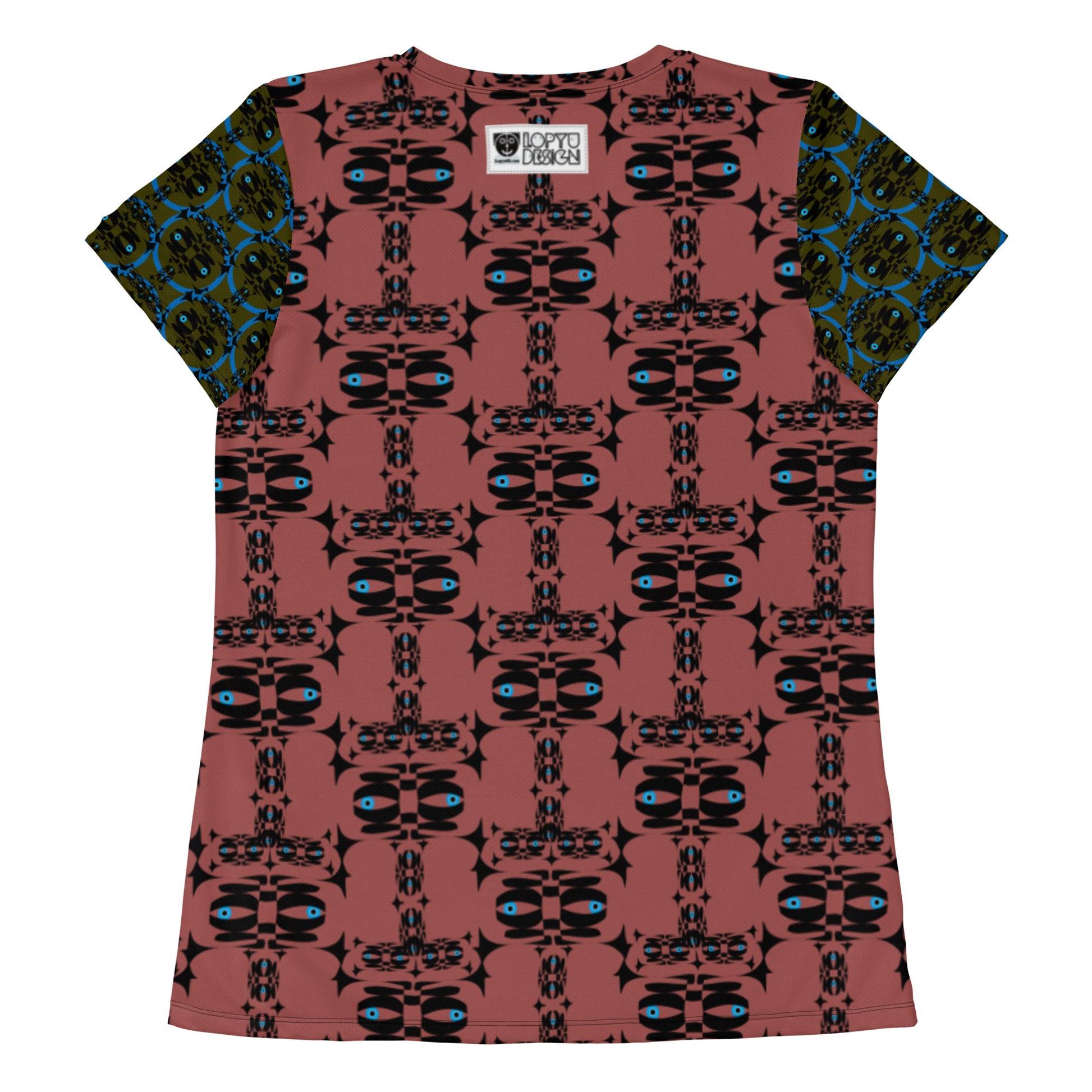 レディース全面プリントアスレチックTシャツ・イジドール格子柄小豆【CA001- TATL006】