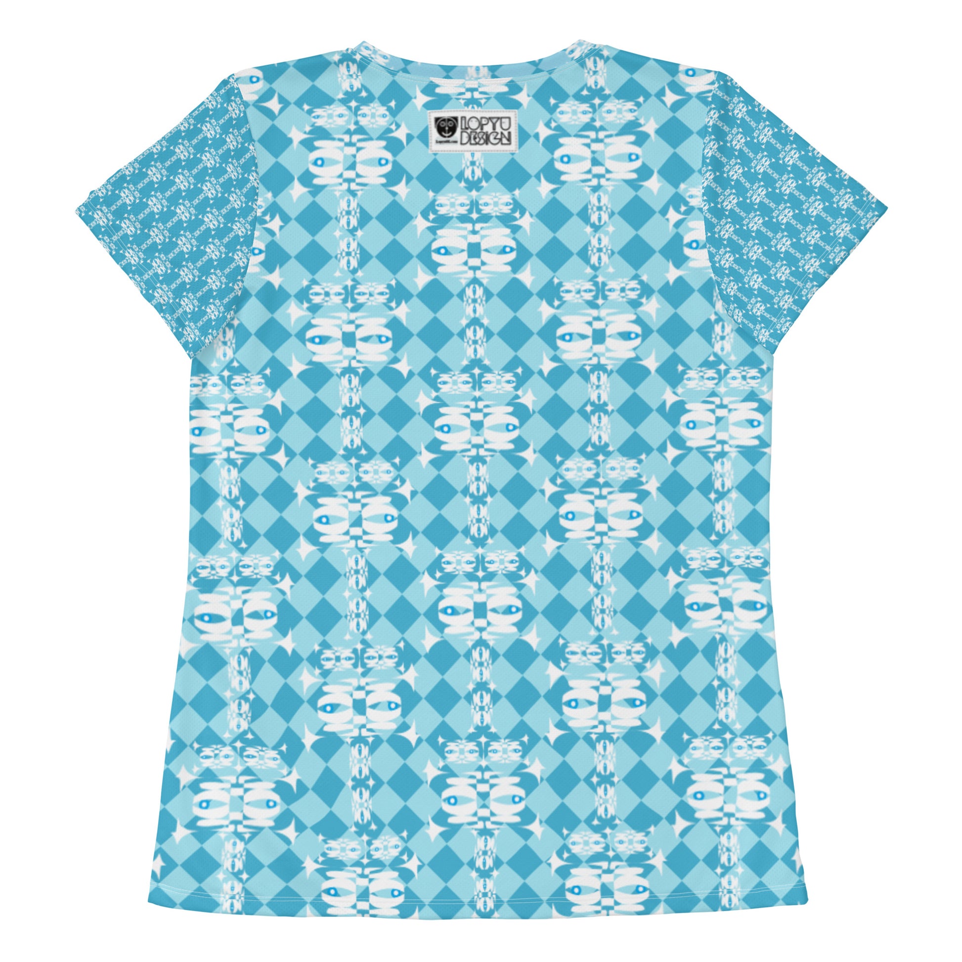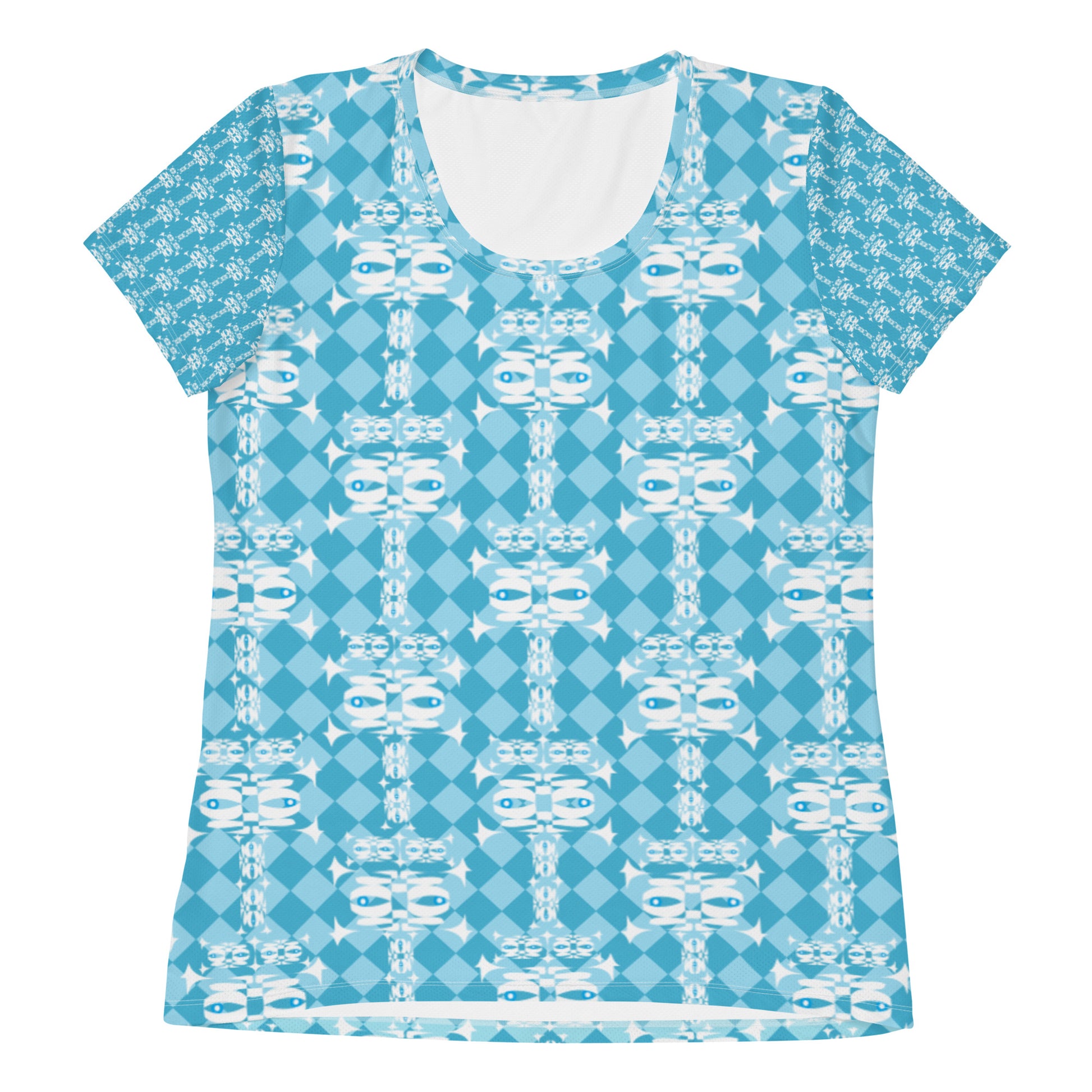 レディース全面プリントアスレチックTシャツ・イジドール模様水色【CA001- TATL003】
