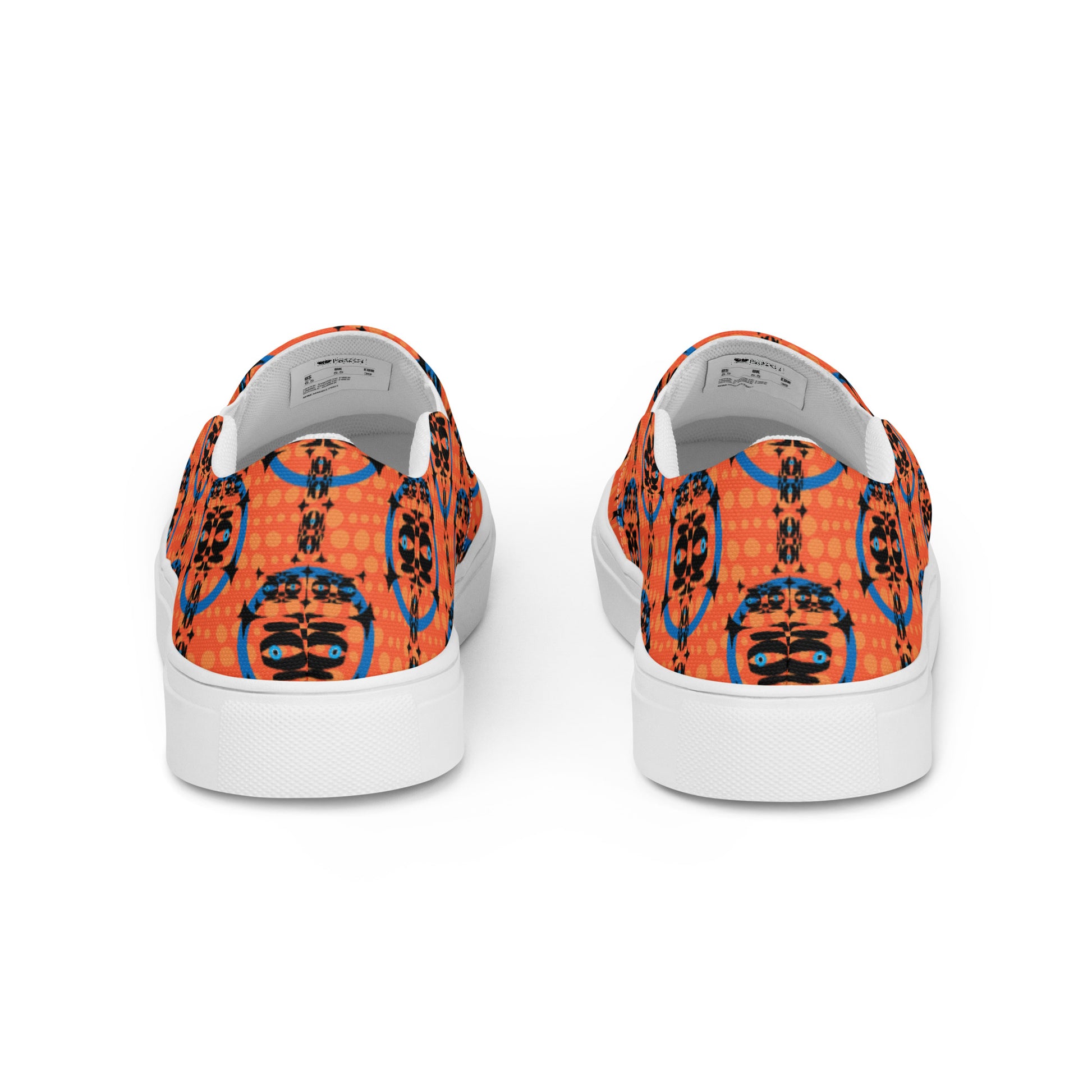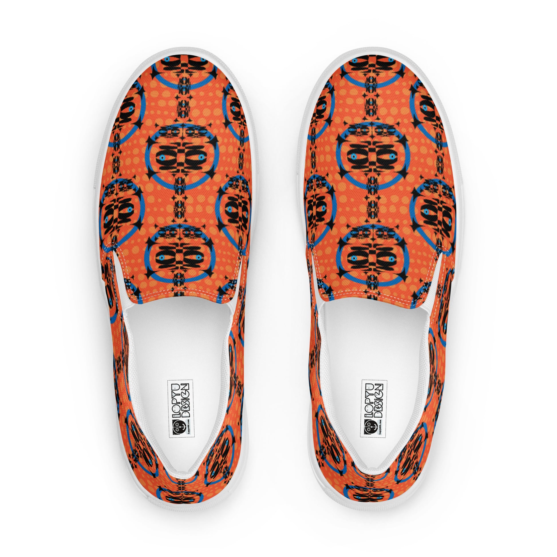 レディーススリップオン キャンバスシューズ・青輪イジドール模様オレンジドッツ【CA001- SCSL009】