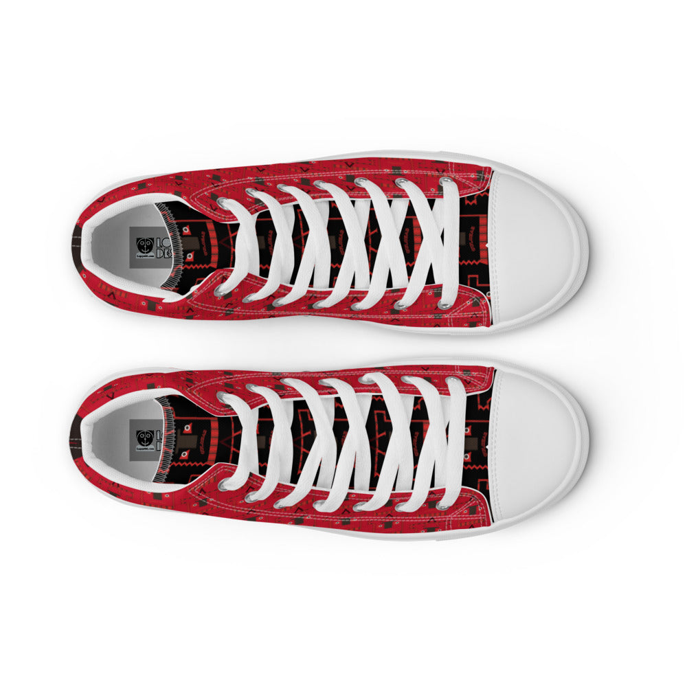 レディース ハイカットスニーカー・トートカルチャー模様赤/黒タン【LG010- HCSL005】