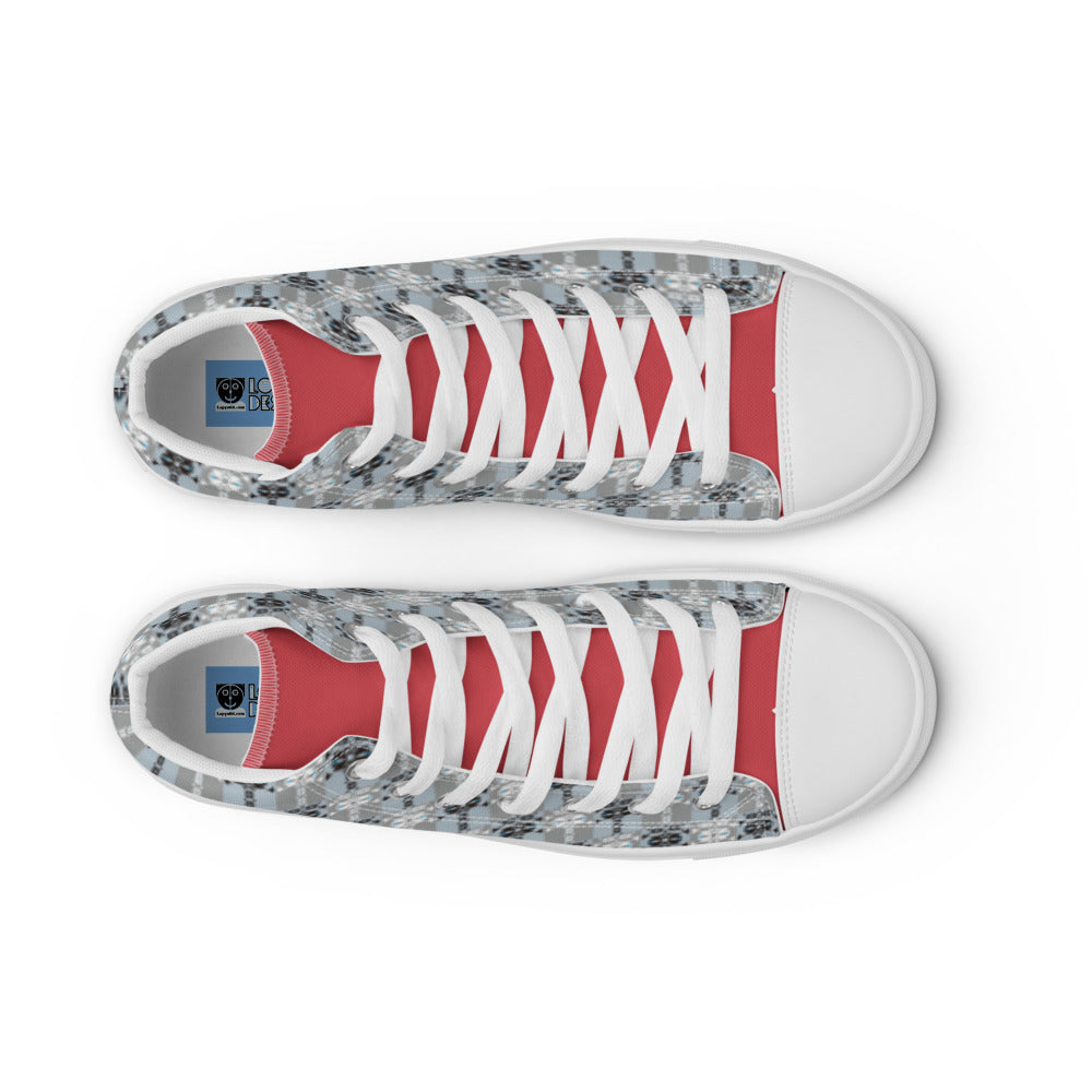 レディース ハイカットスニーカー・イジドール格子柄タン赤【CA001- HCSL001】