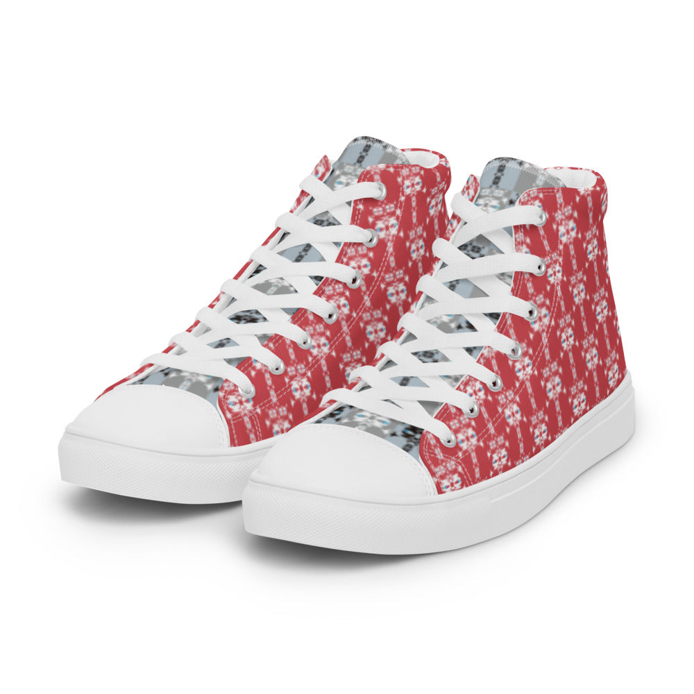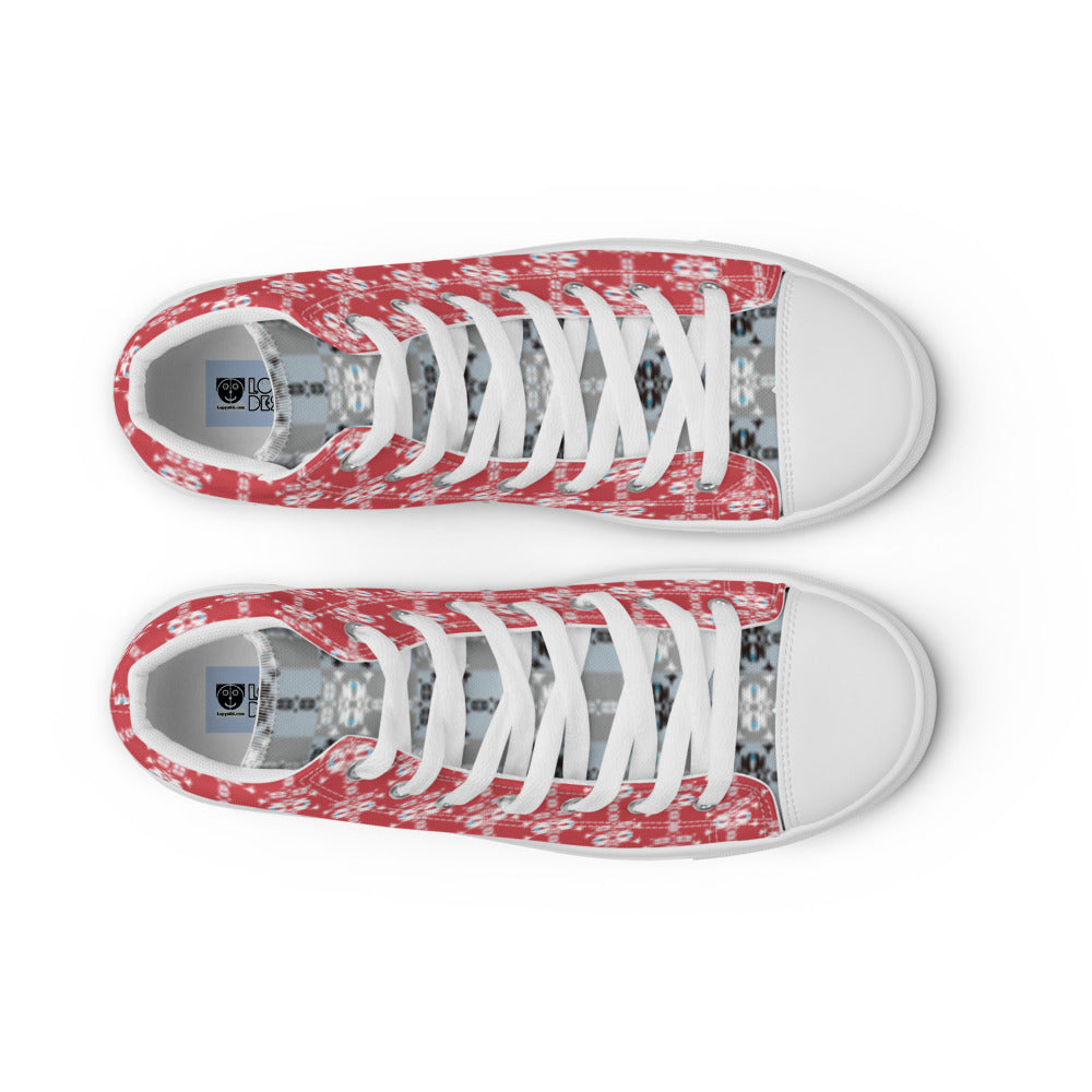 レディース ハイカットスニーカー・イジドール模様赤地格子柄タン【CA001- HCSL003】