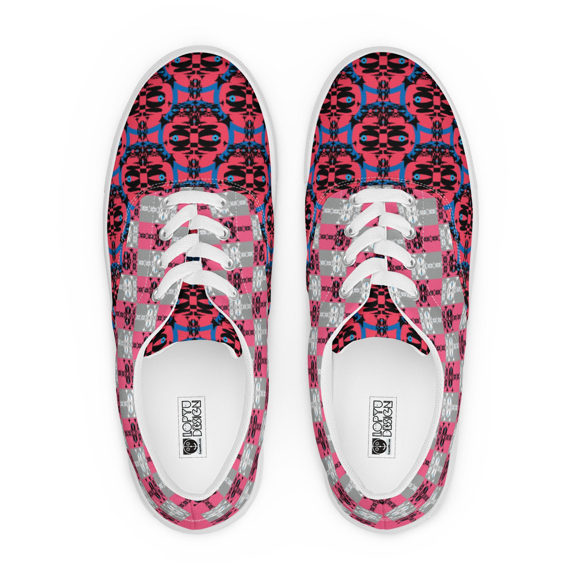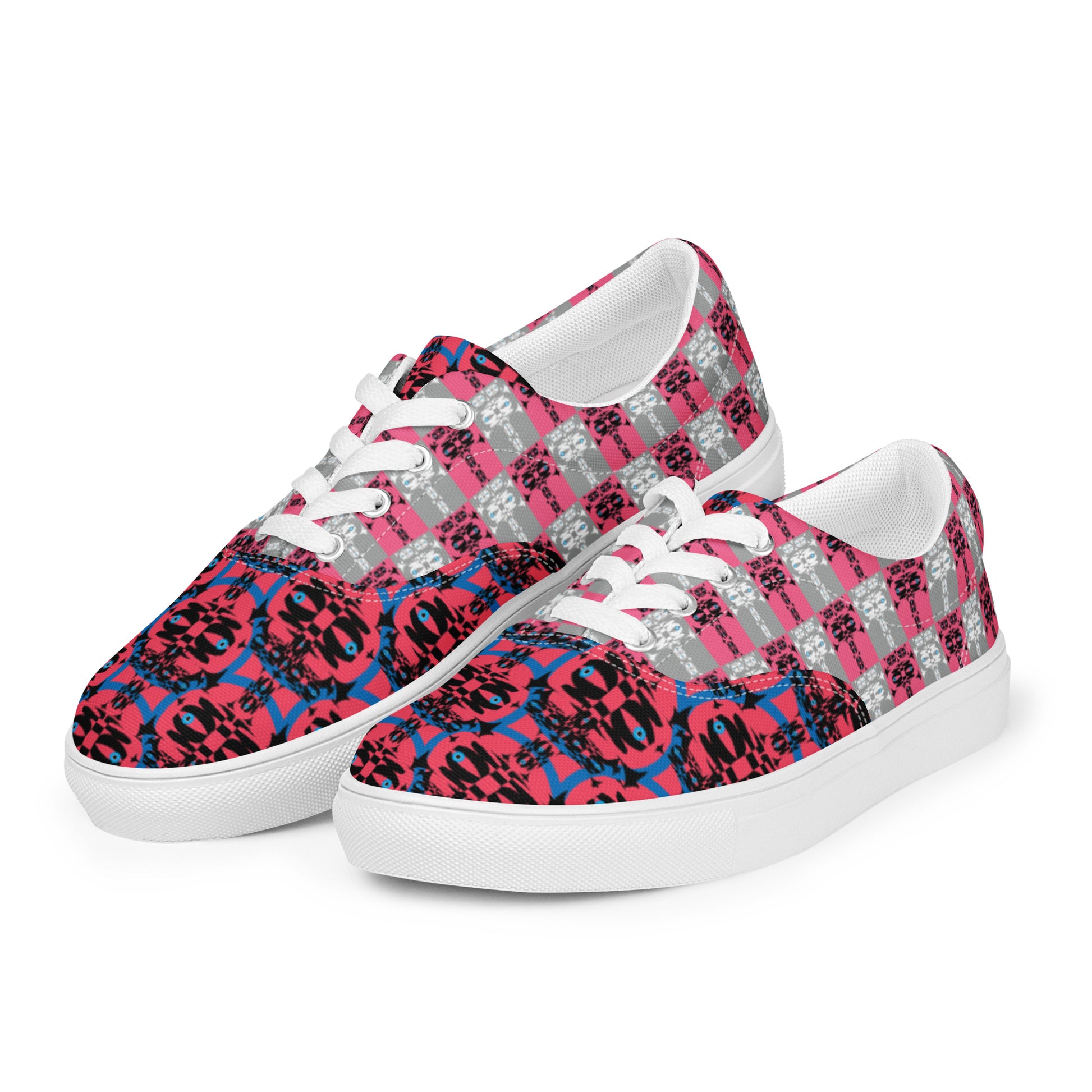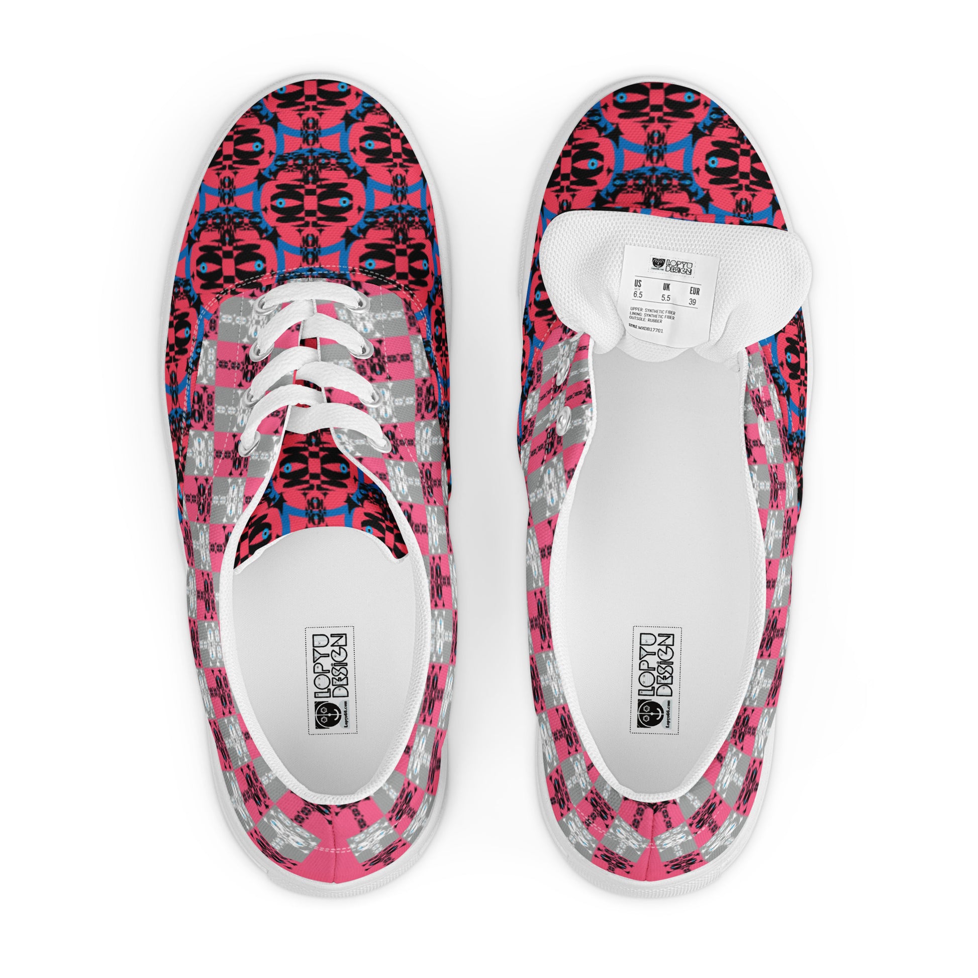 レディース レース アップ キャンバスシューズ・イジドール格子柄ピンク【CA001- RUSL001】