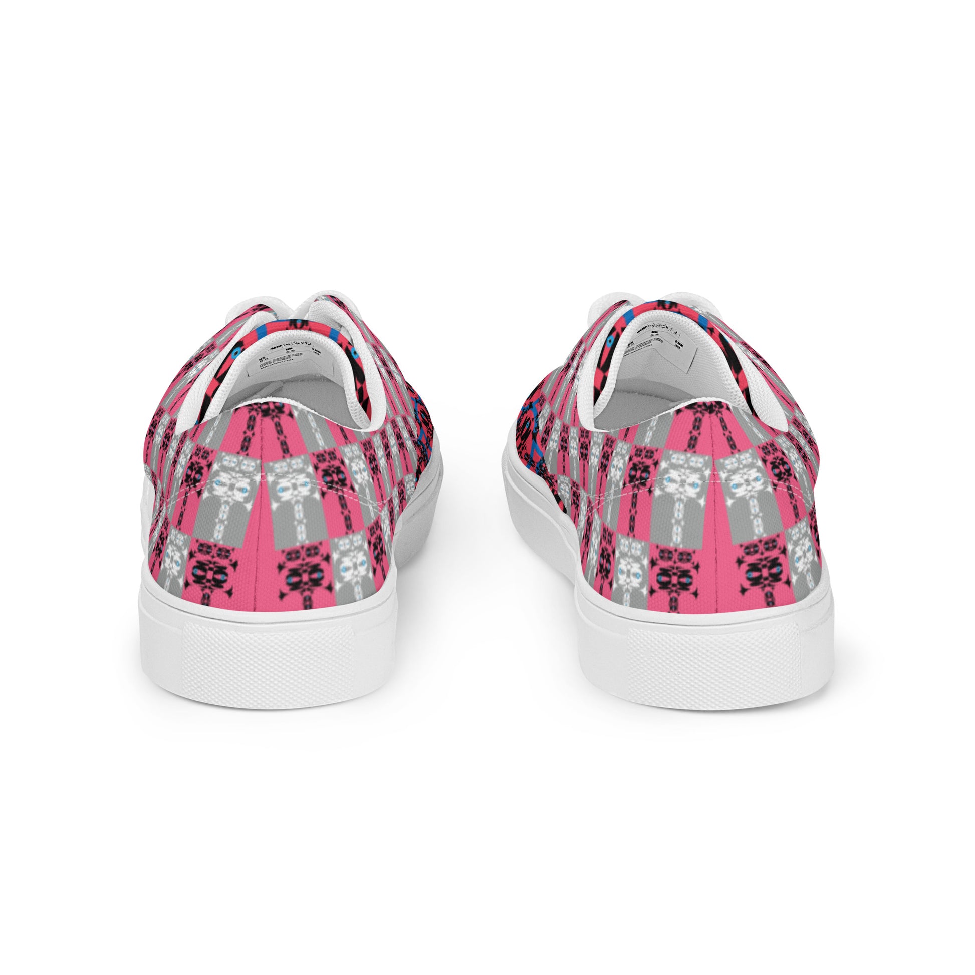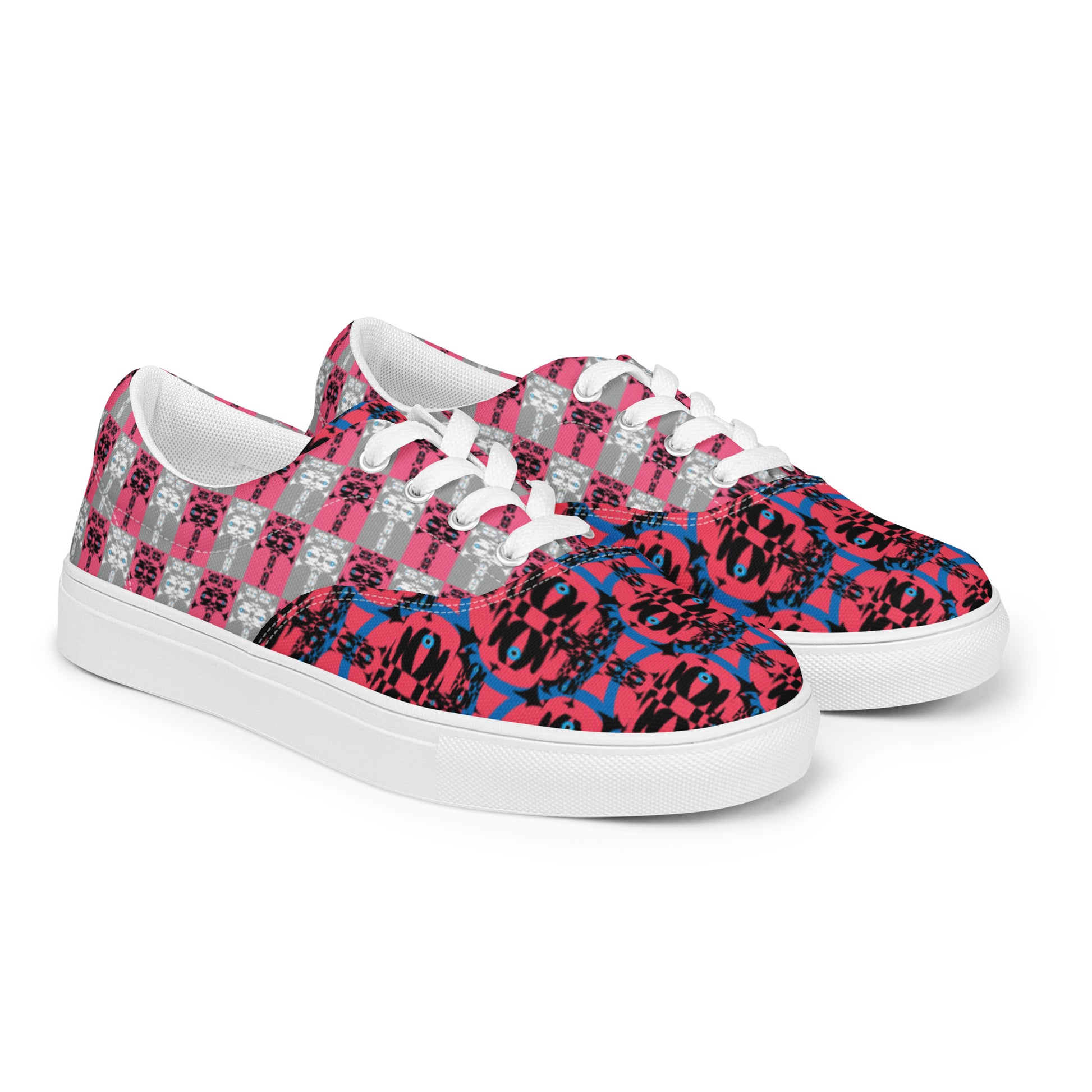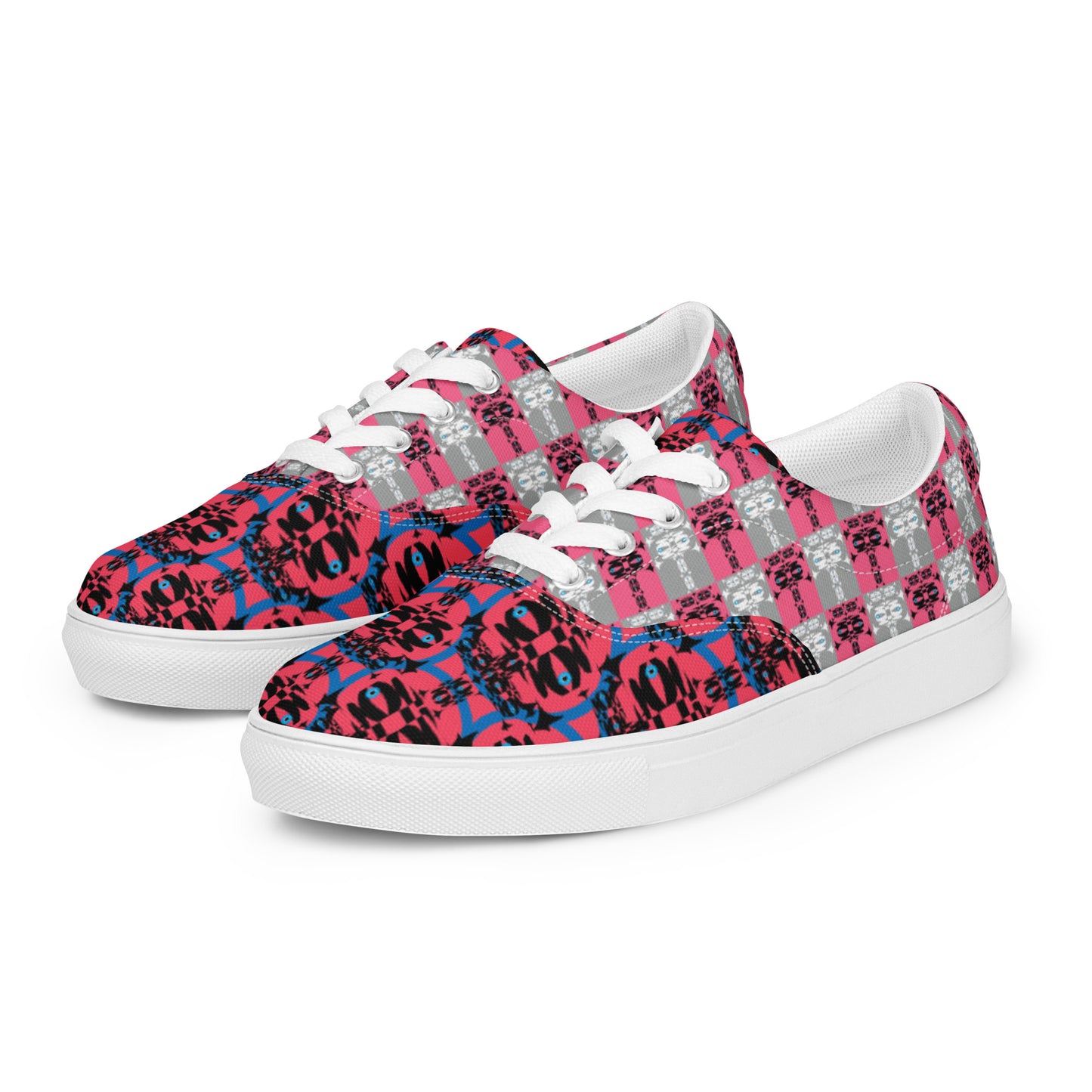 レディース レース アップ キャンバスシューズ・イジドール格子柄ピンク【CA001- RUSL001】