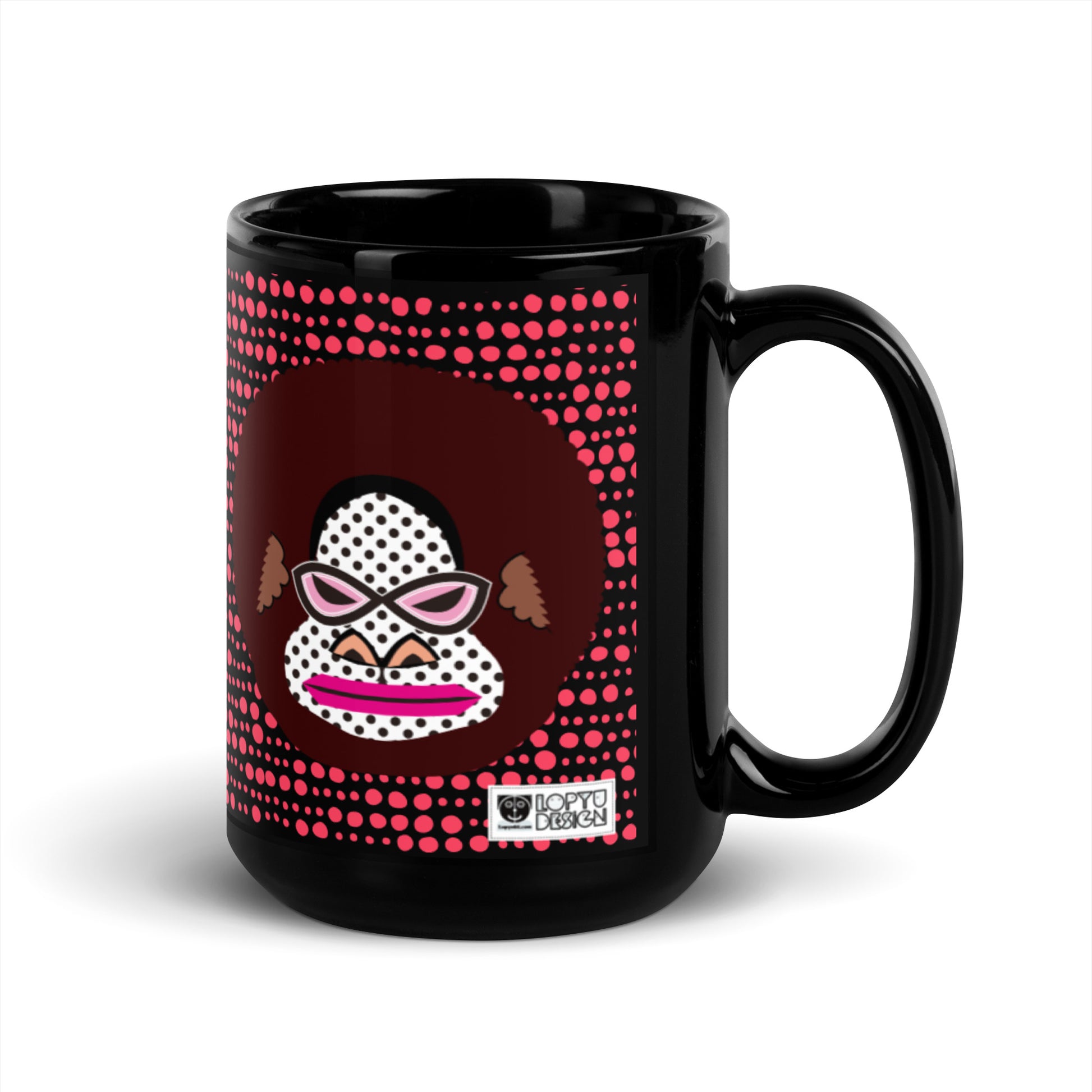 光沢マグカップ(ブラック)・アフロゴリラダダ【CA076- MGB005】