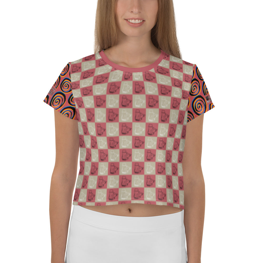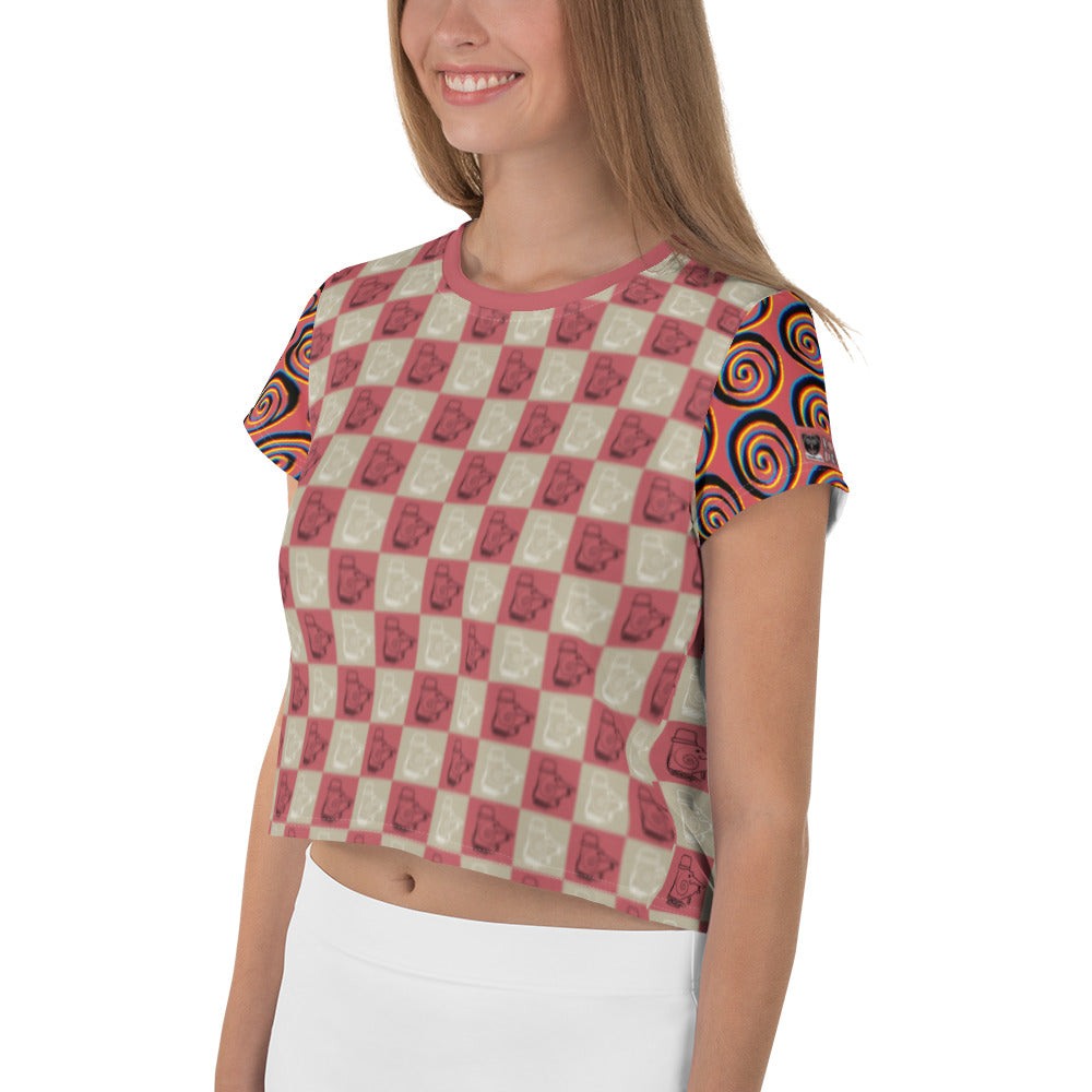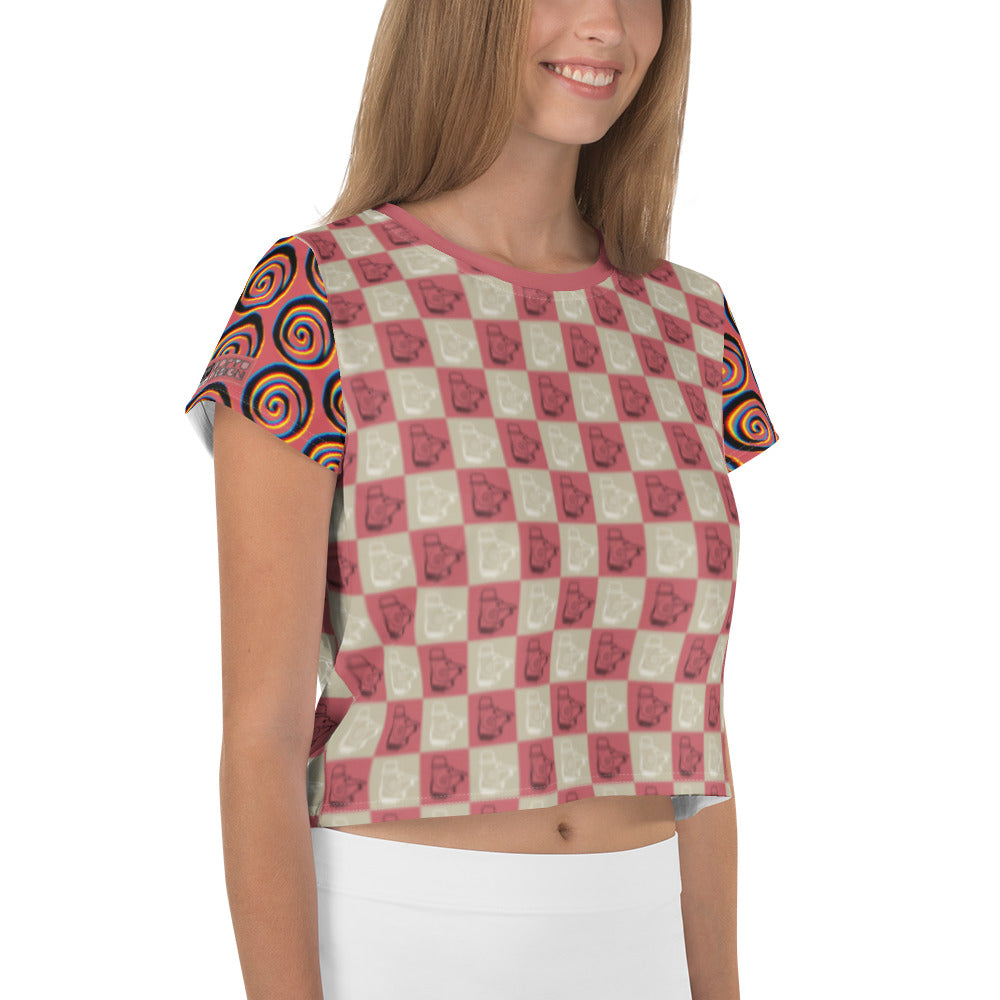 全面プリントクロップTシャツ・パタフィジックダンディ格子柄ピンク【LG002- TCT010】