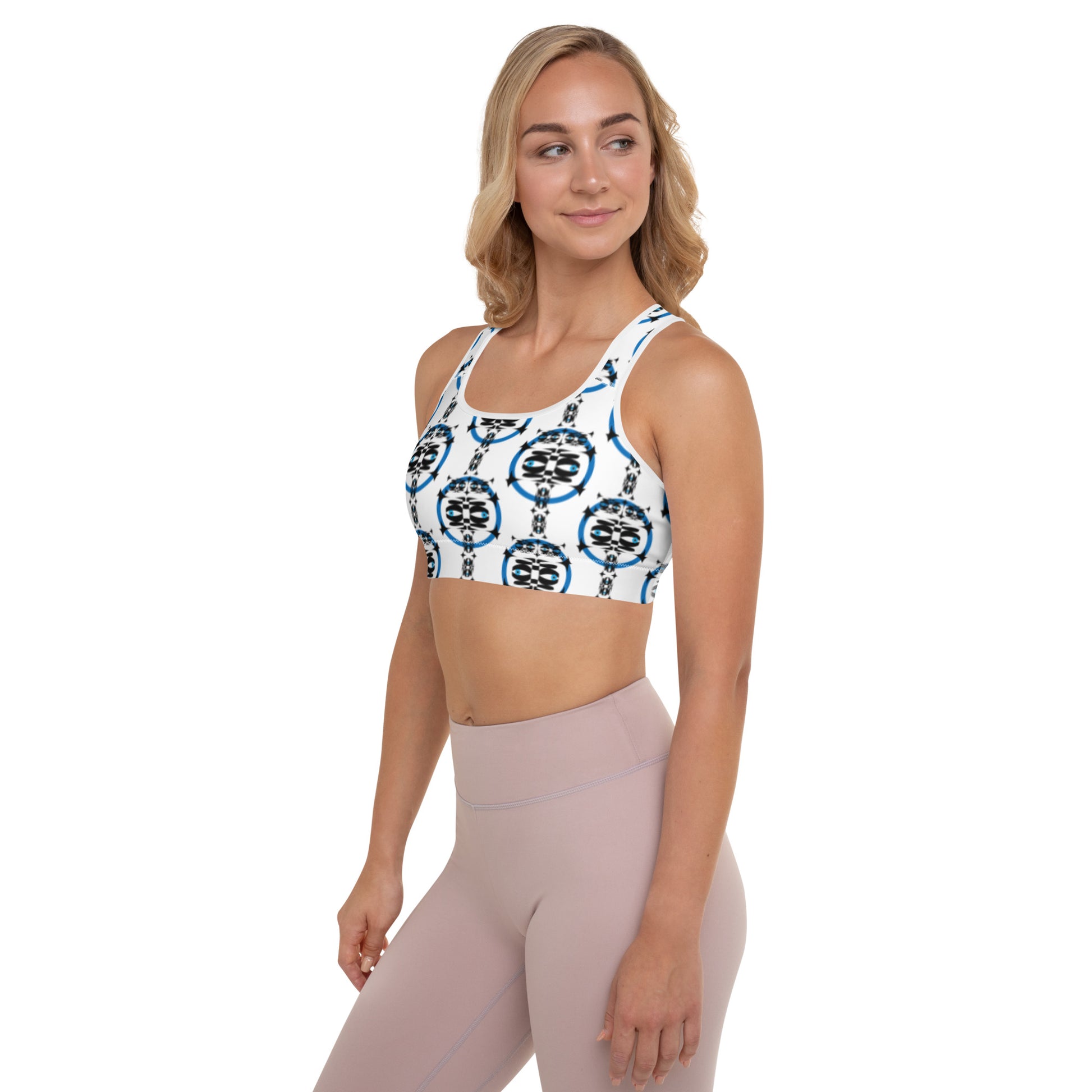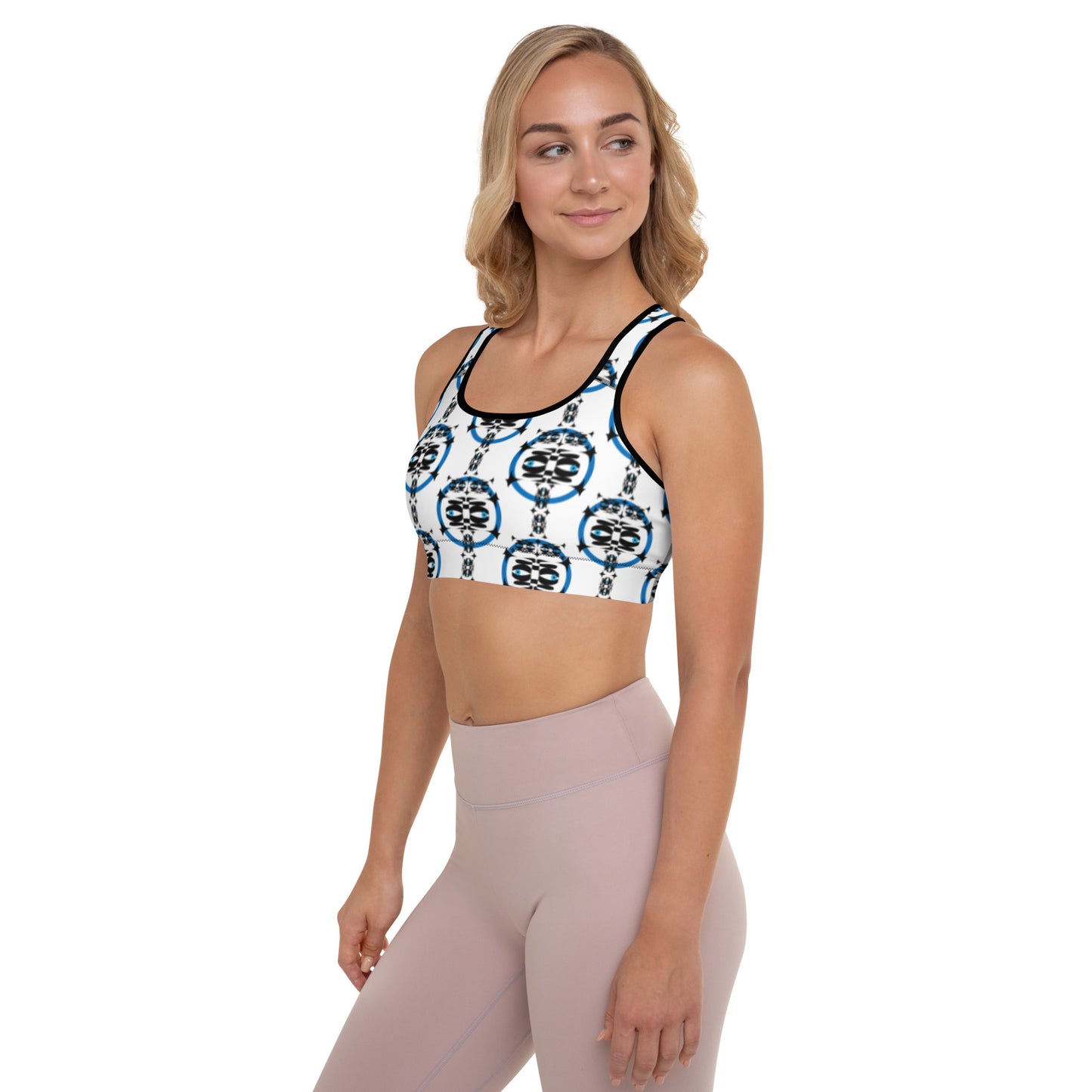 パッド付きスポーツブラ・青輪イジドールパターン白【CA001- PSBR003】