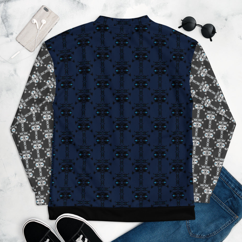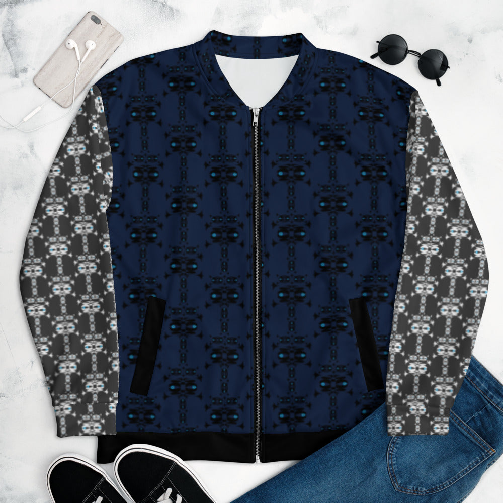 全面プリントユニセックスボンバージャケット・イジドール模様紺地【CA001- BJU002】