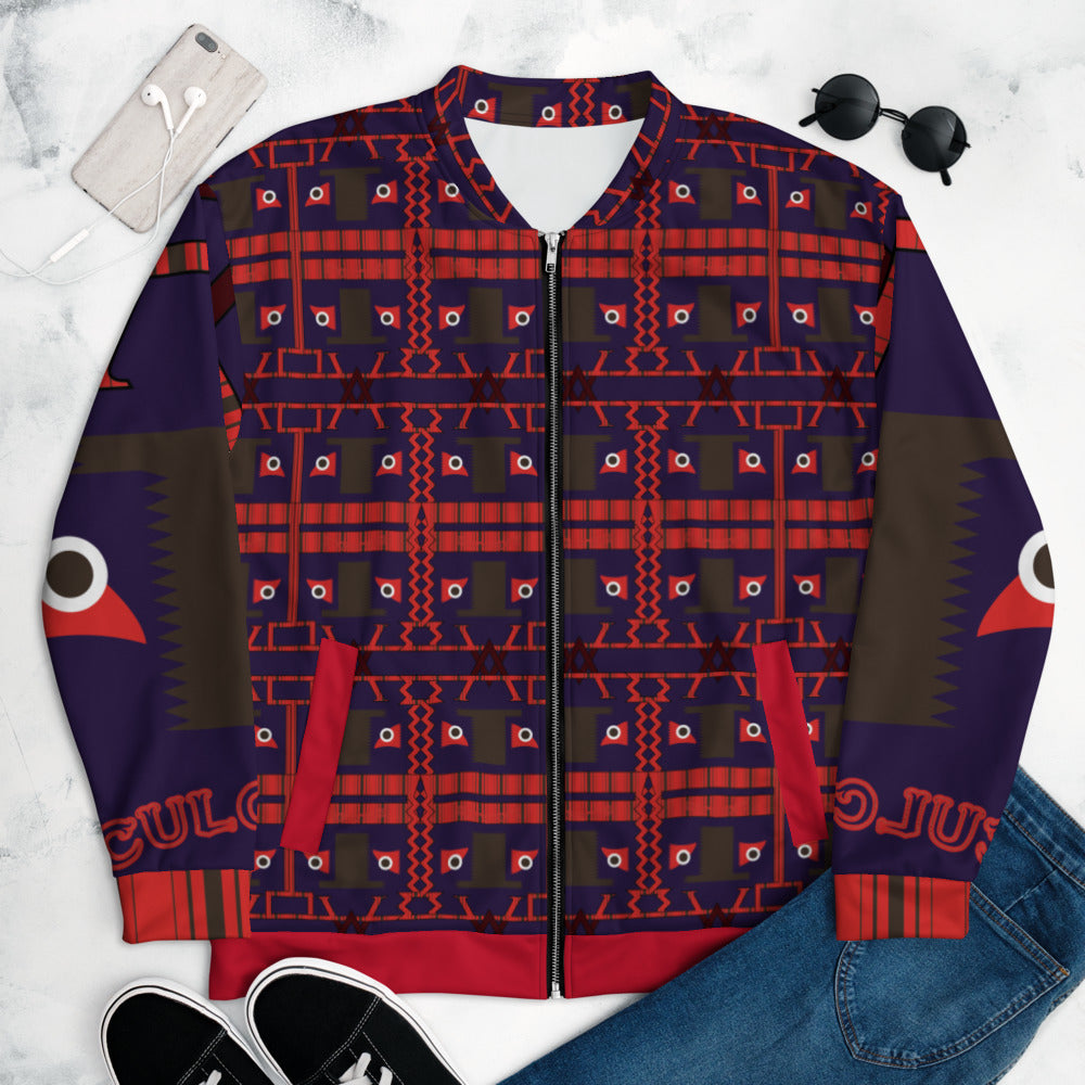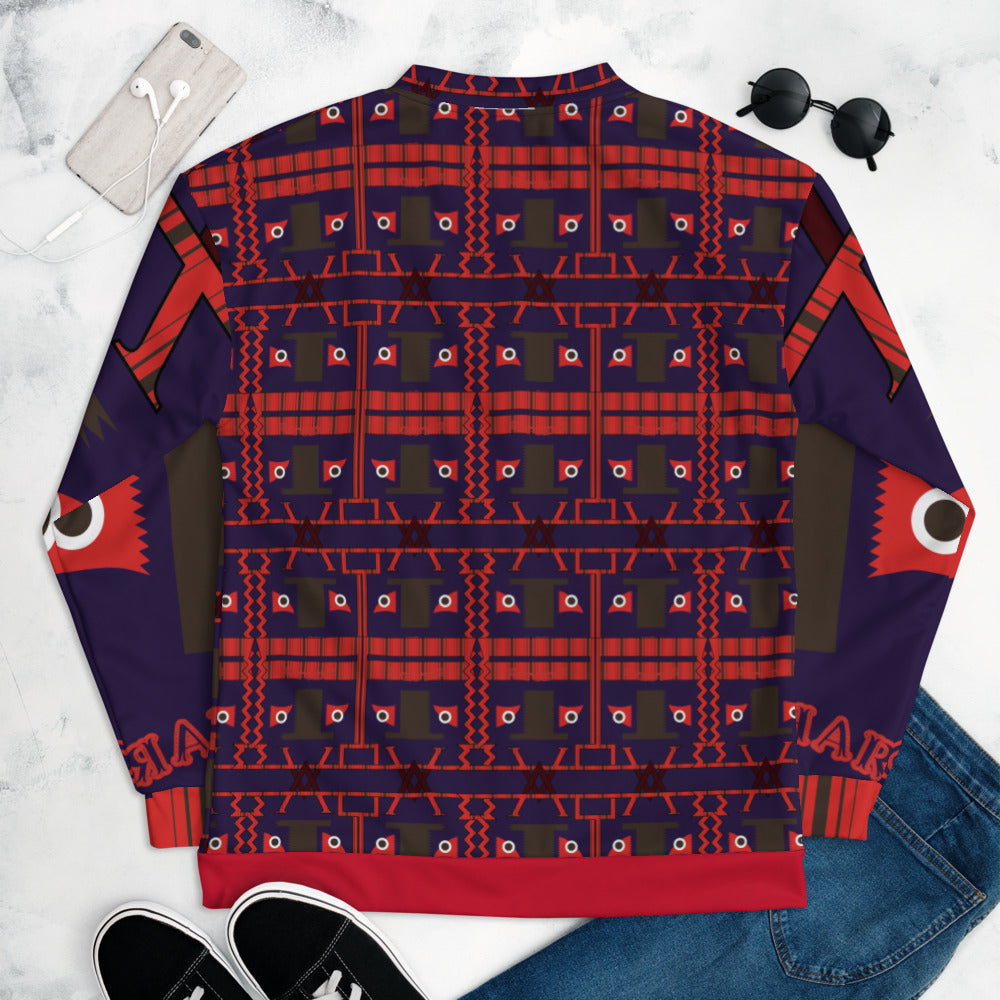 全面プリントユニセックスボンバージャケット・トートカルチャア模様紺地【LG010- BJU007】
