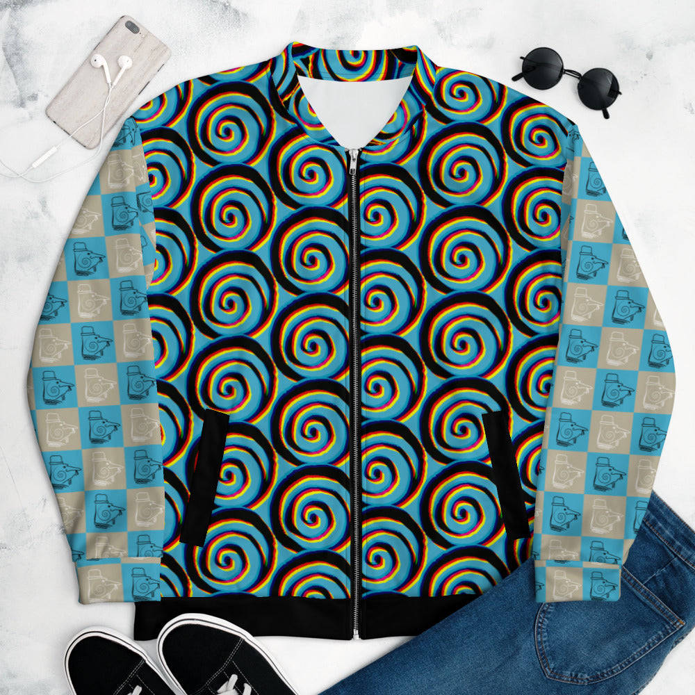 全面プリントユニセックスボンバージャケット・渦巻き【PD003- BJU009】