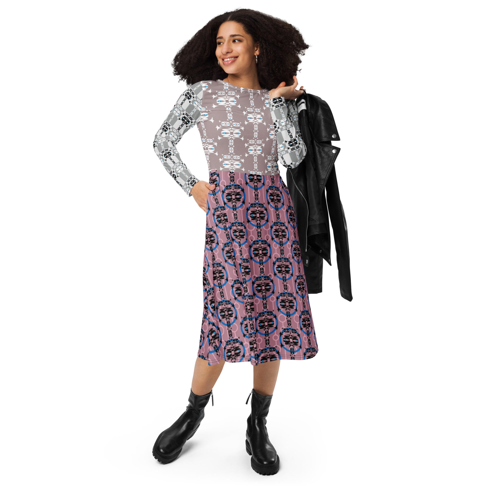全面プリント長袖ミドルワンピース・イジドールMIX【CA001- MOP001】