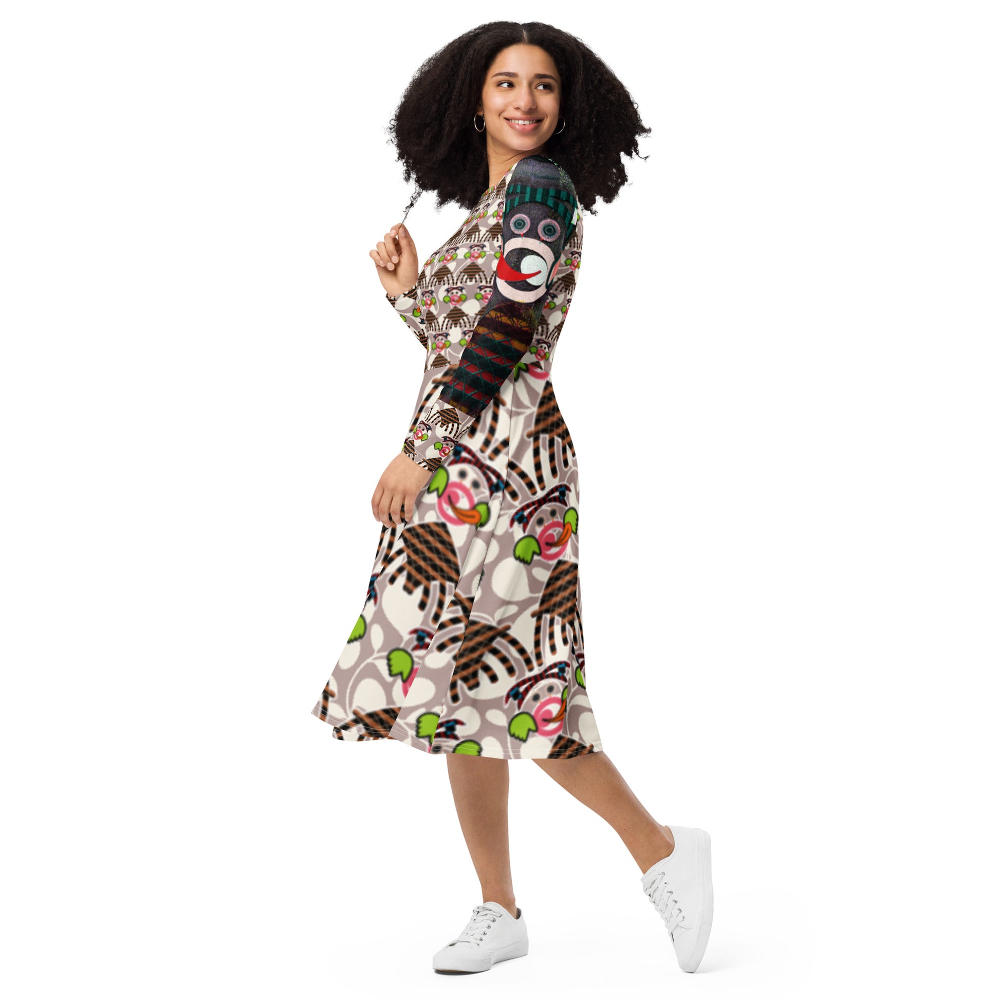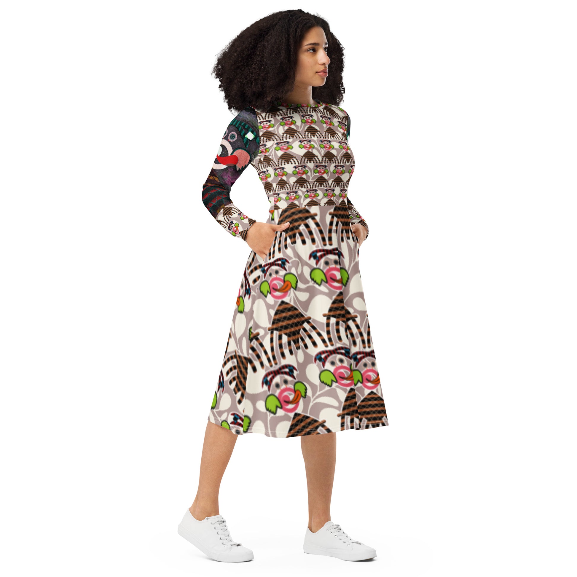 全面プリント長袖ミドルワンピース・ペロンパMIXモダン【CA077- MOP016】