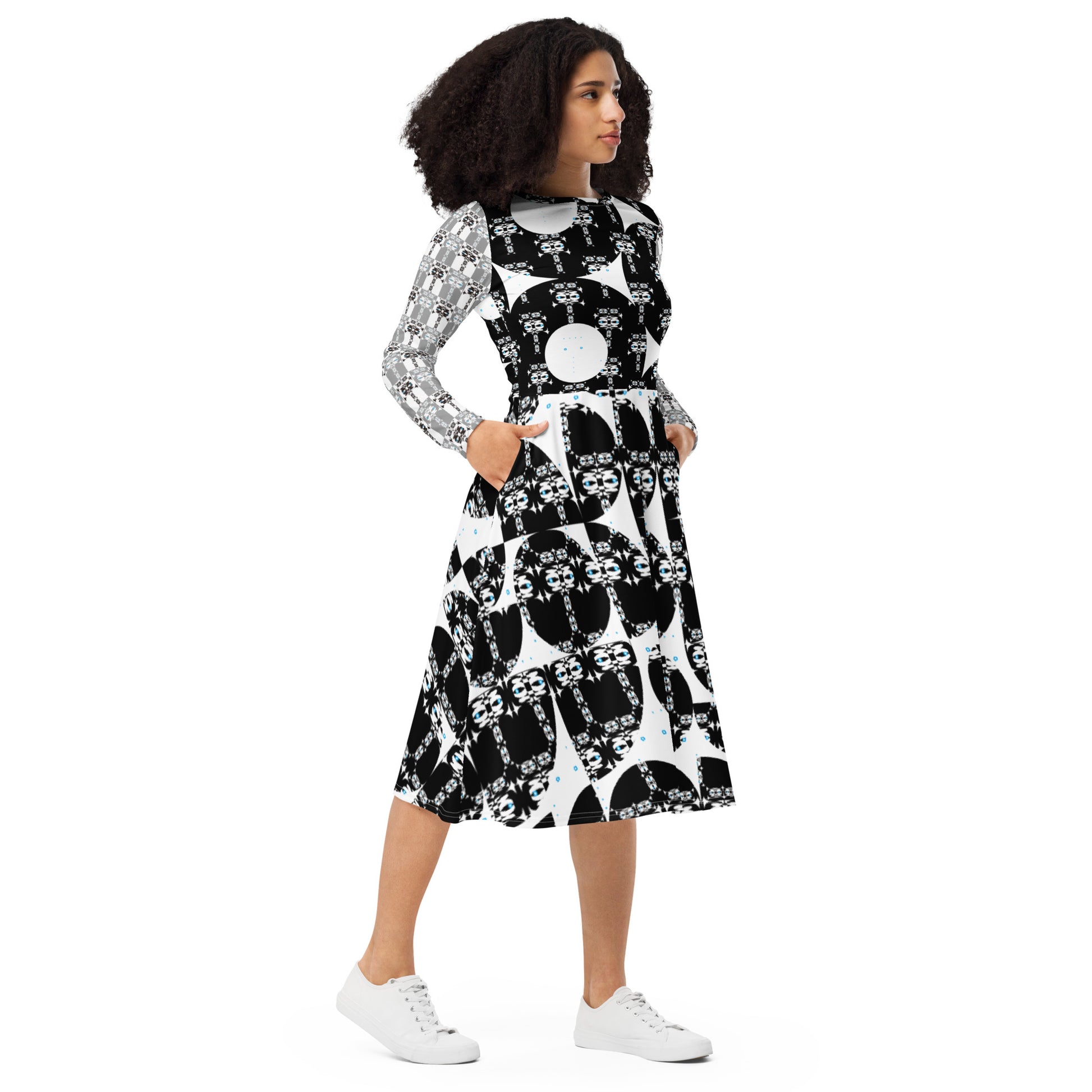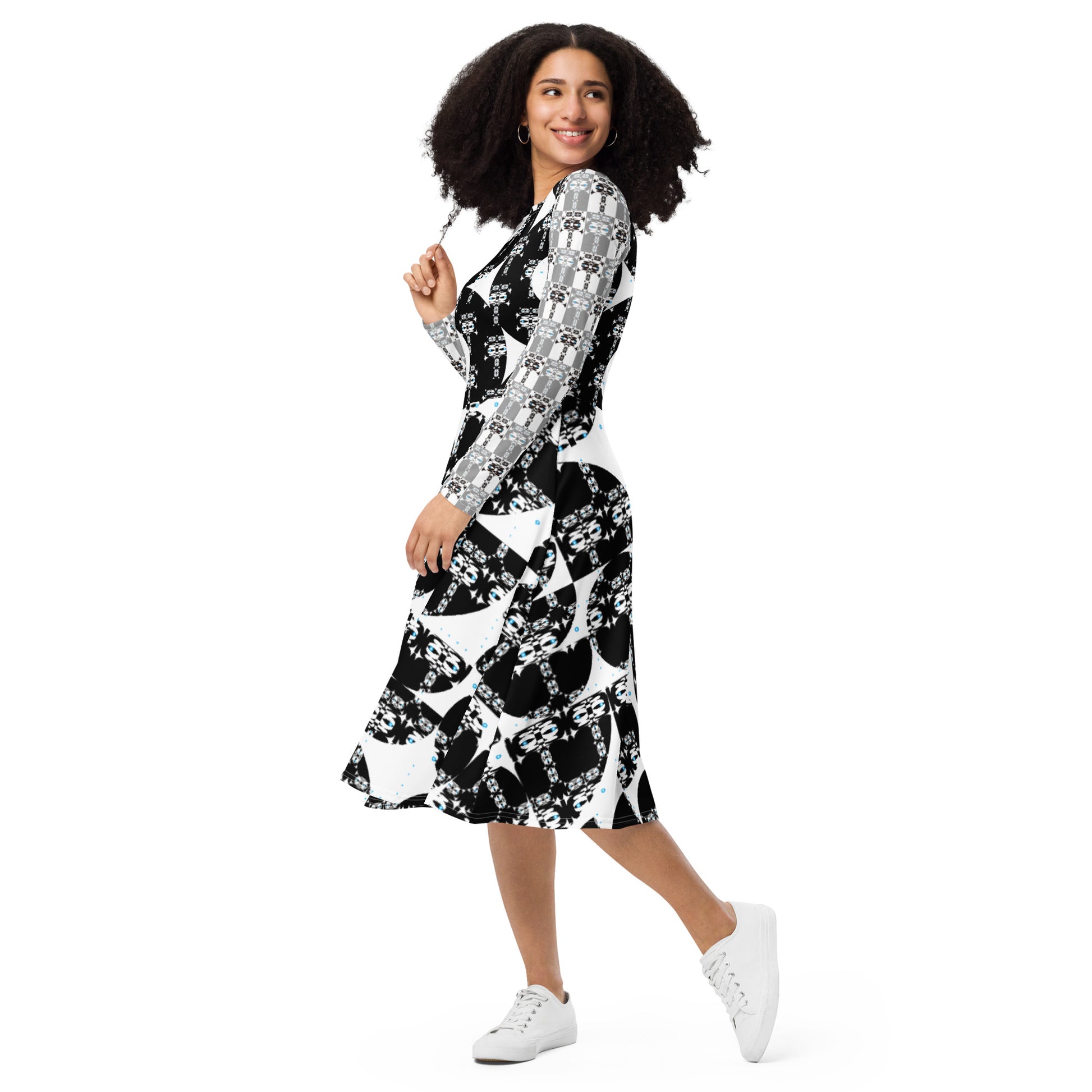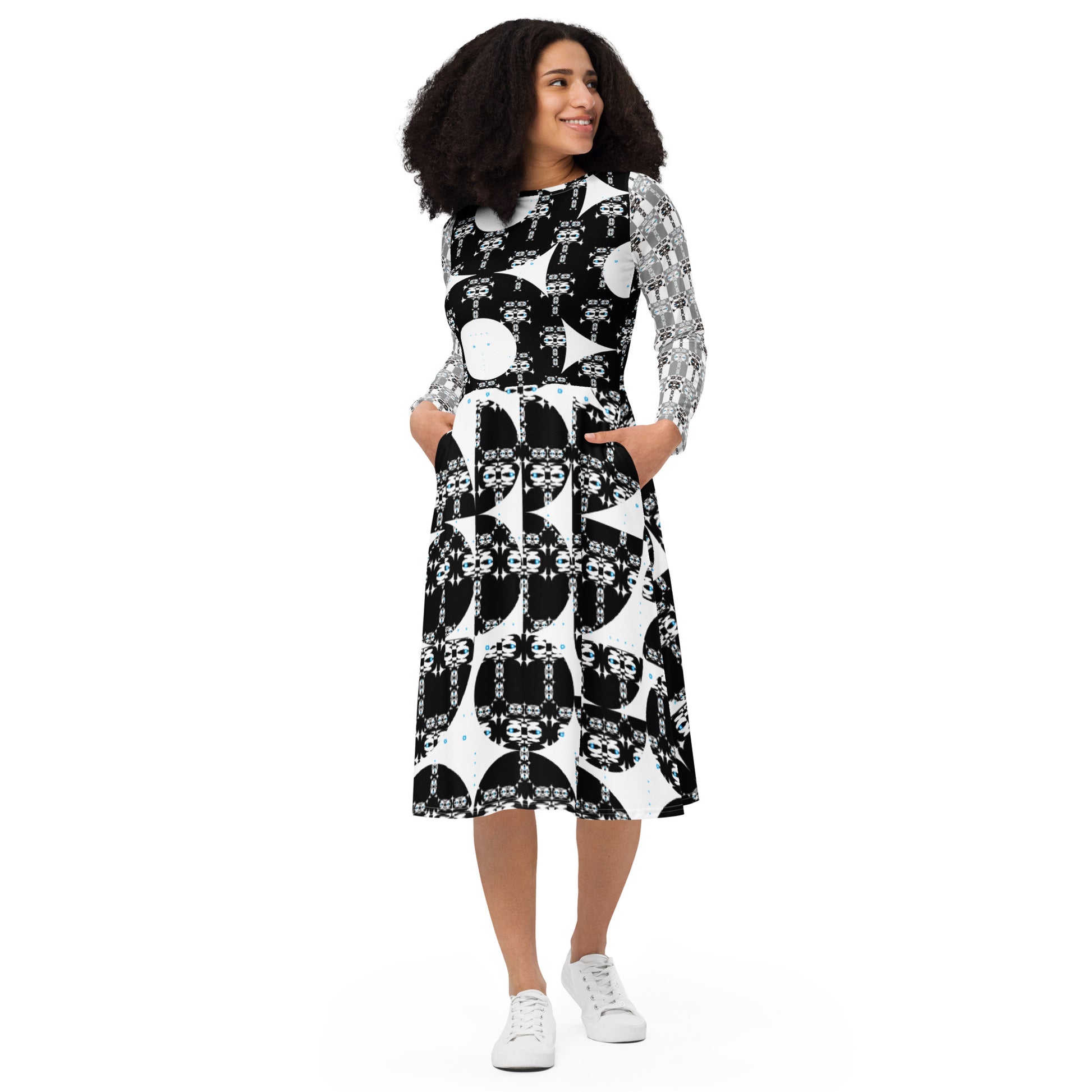 全面プリント長袖ミドルワンピース・イジドールMIXモダン【CA001- MOP020】